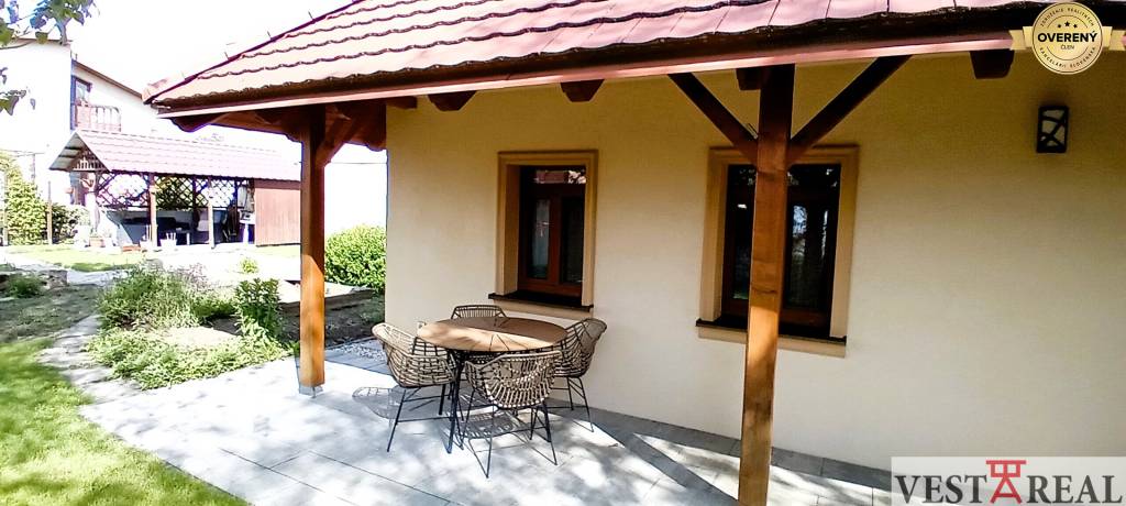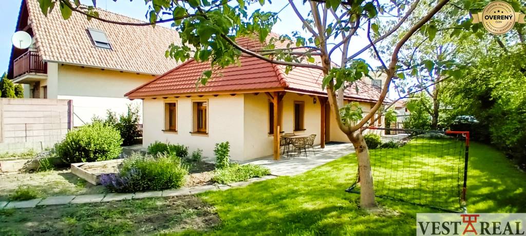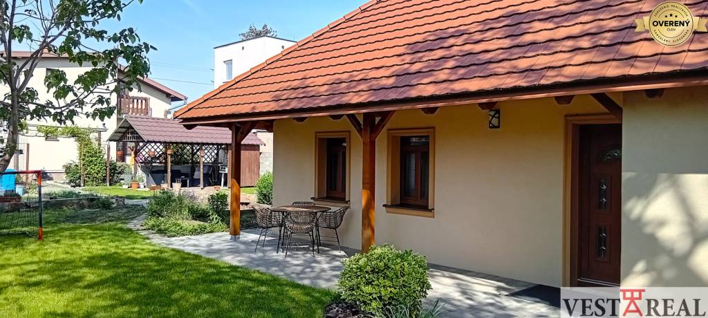 [i]Exteriér domu je rovnako pôsobivý ako jeho interiér.[/i] Okolie je upravené s dôrazom na estetiku, s oplotením a chodníkmi zo zámkovej dlažby. K domu prislúcha aj okrasná záhrada, ktorá je ideálnym miestom na relax a oddych. Parkovanie je zabezpečené pre dve autá na vlastnom pozemku.