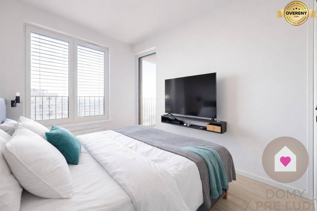 Ponúkame na dlhodobý prenájom kompletne dizajnovo zariadený 2 izbový byt v novostavbe Kopčianka kolaudovanej v roku 2024. Byt sa nachádza na najvyššom 11. poschodí. Veľkou výhodou je že na poschodí sa nachádzajú iba 3 bytu. Orientovaný je na južnú stranu do vnútrobloku, čo zaručuje príjemnú svetelnosť v celom byte.