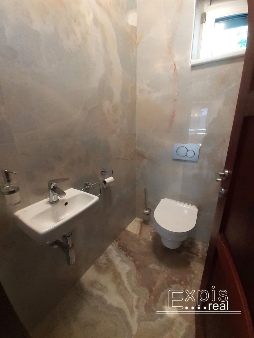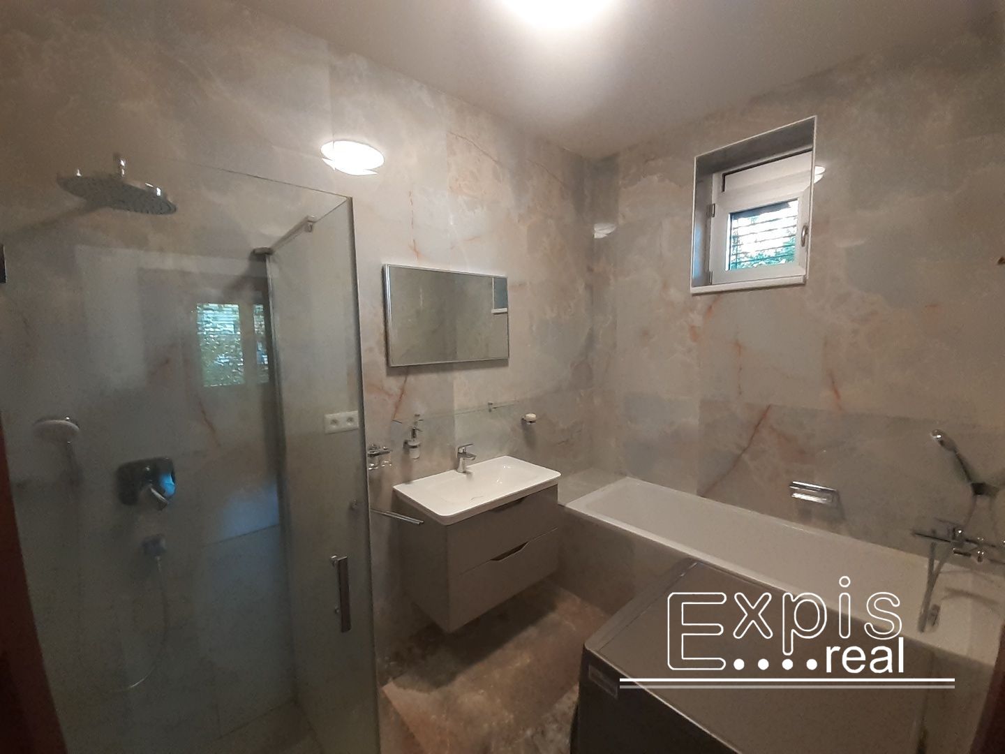 Kúpeľňa je s vaňou, sprchou, práčkou a  WC je samostatné.