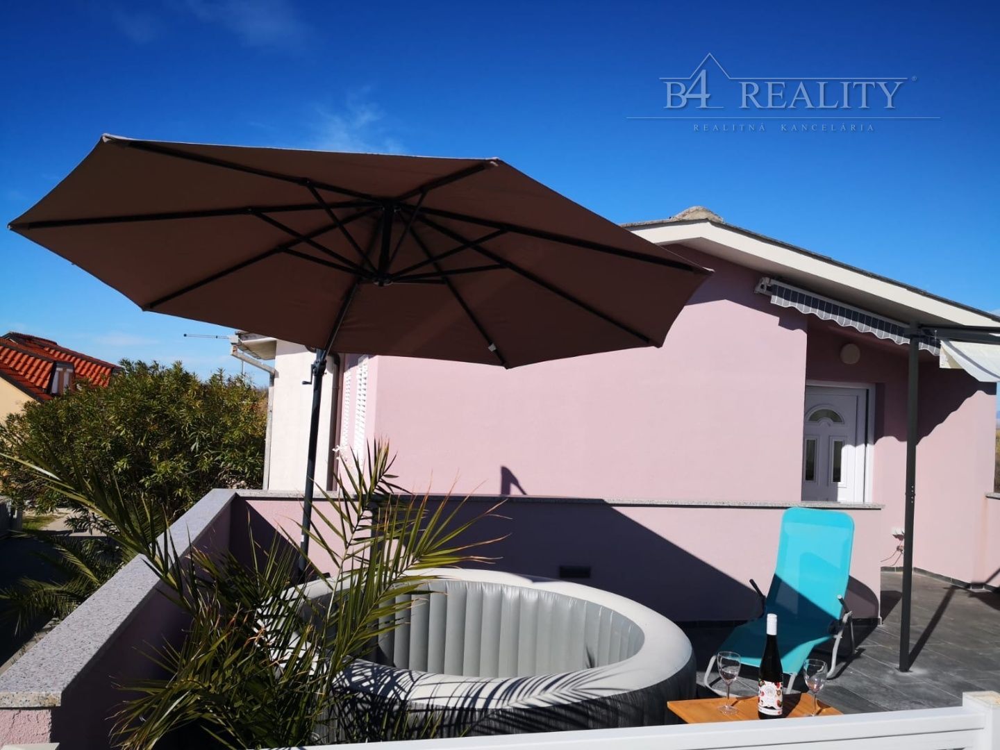 Ponúkame Vám na predaj apartmánový dom v obci Privlaka, vzdialenej 25 km od chorvátskeho mesta Zadar. Dom sa nachádza v pokojnej dedinke, len 1200 m od najbližšej piesočnatej pláže, ktorá nadväzuje na známu Queen's Beach (najdlhšia piesočnatá pláž v Chorvátsku - 3,5 km, s oblasťou s liečivým bahnom). V blízkosti sa nachádza niekoľko ďalších pláží: pláž FKK, pláž Mletak, strediská Zaton a Petrčane. Dom je vhodný na trvalé bývanie, rekreáciu alebo podnikanie. Dispozičné riešenie prízemia domu: 30 m² terasa obklopená zeleňou a palmami + 40 m² apartmán s obývacou izbou, spálňou, samostatnou kuchyňou a kúpeľňou (WC + sprcha). Byt je vybavený klimatizáciou, stropnými ventilátormi, infračervenými vykurovacími panelmi, rekuperáciou a krbom. Dispozičné riešenie 1.poschodia domu: 40 m² apartmán so zariadenou obývacou izbou, spálňou, samostatnou kuchyňou a kúpeľňou + 30 m² terasa, s výhľadom na pohorie Velebit a okolitú prírodu, ktorá je vybavená vírivkou a jedálenským stolom chráneným pred slnkom. Dom prešiel postupne rekonštrukciou. Nové plastové okná boli osadené v roku 2024. Na poschodí bola zrekonštruovaná kúpeľňa a kuchyňa. V blízkosti domu sú viaceré obchody (Spar, Plodine, Konzum atď.), pekárne, reštaurácie, lekárne a zdravotnícke služby. Blízke turistické atrakcie: historické mesto Nin (2 km), Národný park Paklenica, Vranské jazero, ostrov Pag atď. Najbližšie letisko je v 25 km vzdialenom Zadare. Dom je k dispozícii po dohode s majiteľom. V cene nehnuteľnosti nie je zahrnutá provízia RK a poplatky súvisiace s kúpou nehnuteľnosti v zmysle platnej legislatívy v Chorvátsku. Cena domu: 264.000,- eur.