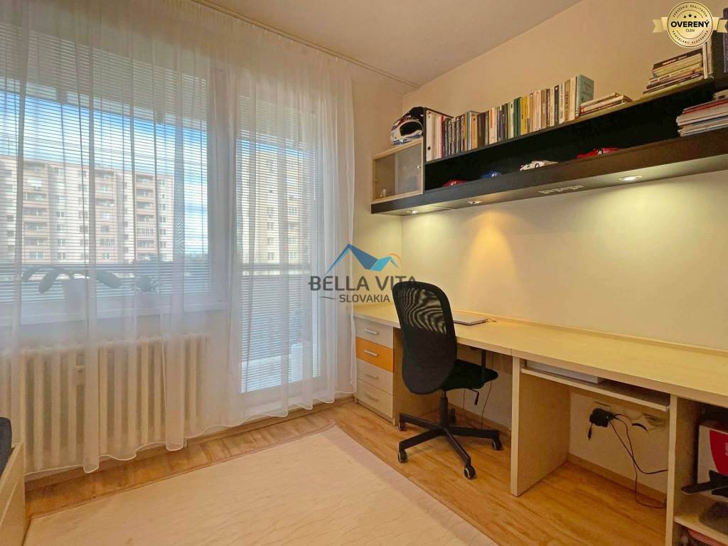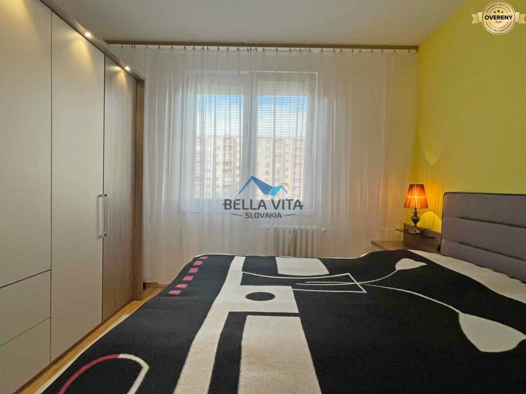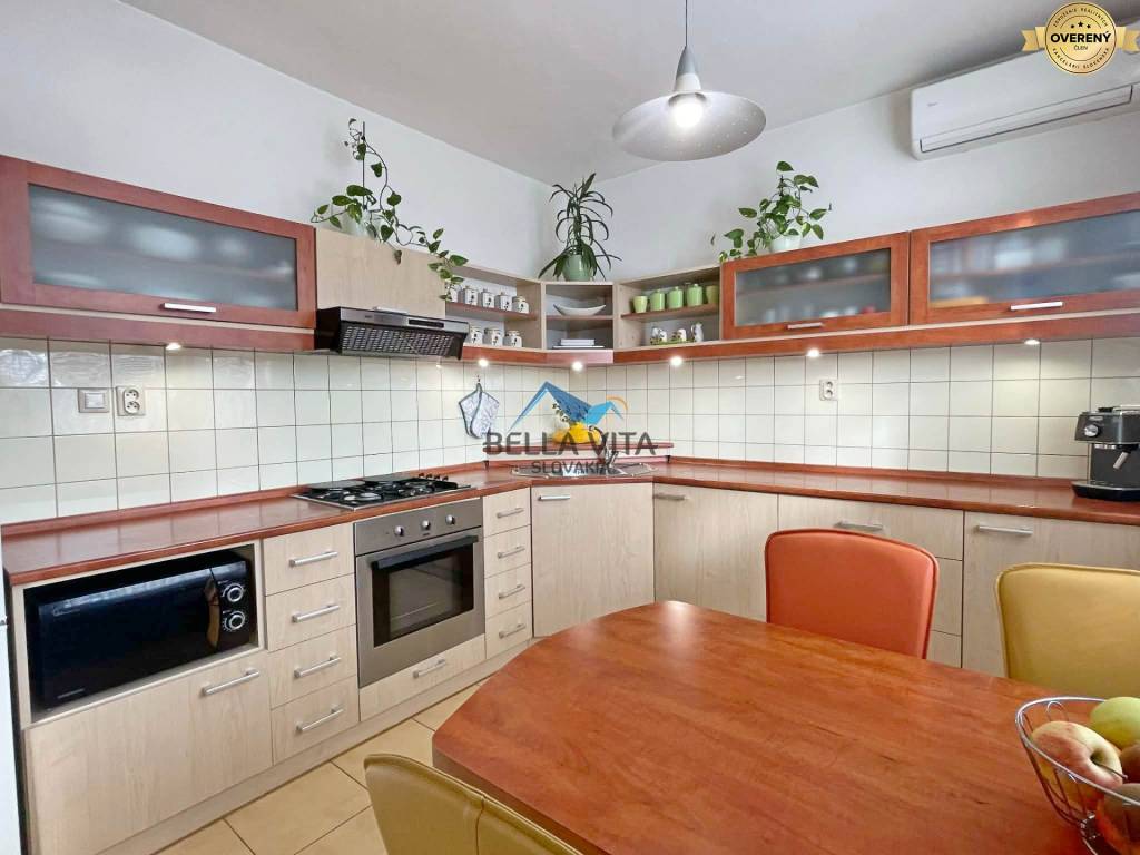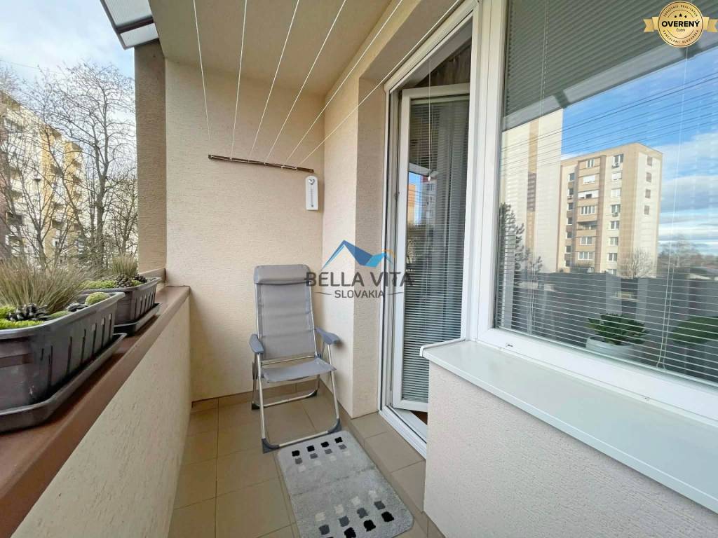 Byt prešiel rekonštrukciou: Murované jadro, omietky, plávajúce podlahy, plastové okná so žalúziami, klimatizácia, vstavaný nábytok na chodbe, v detskej izbe, kuchynská linka robená na mieru. Byt je veľmi príjemný, udržiavaný.
