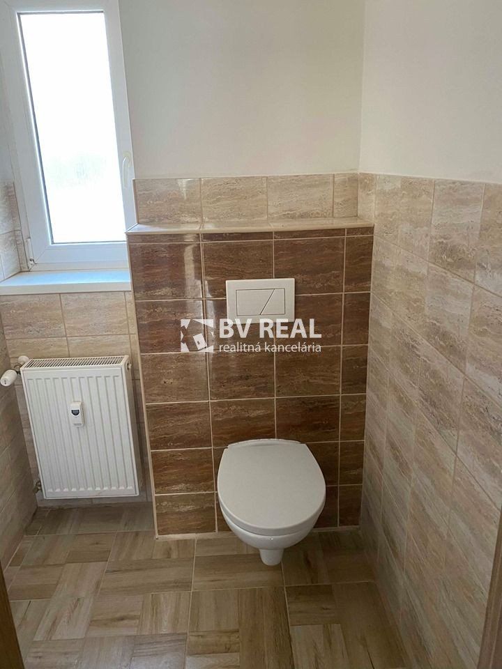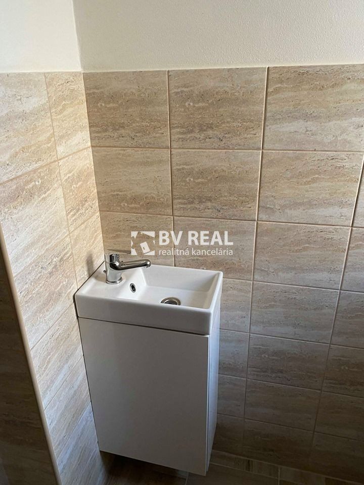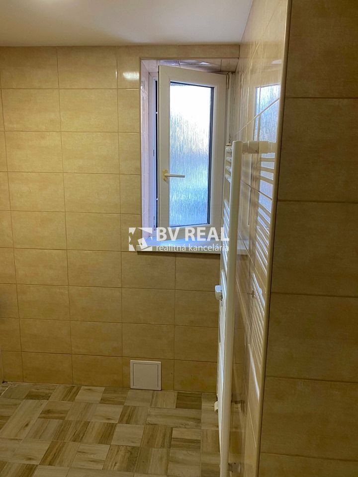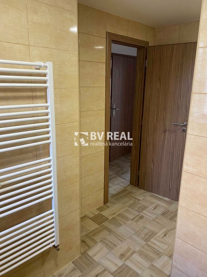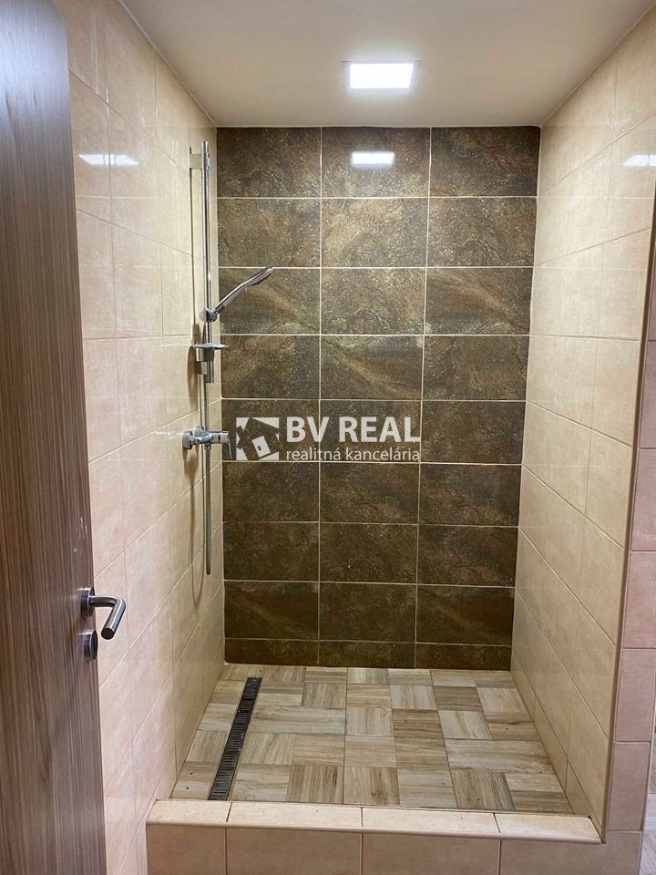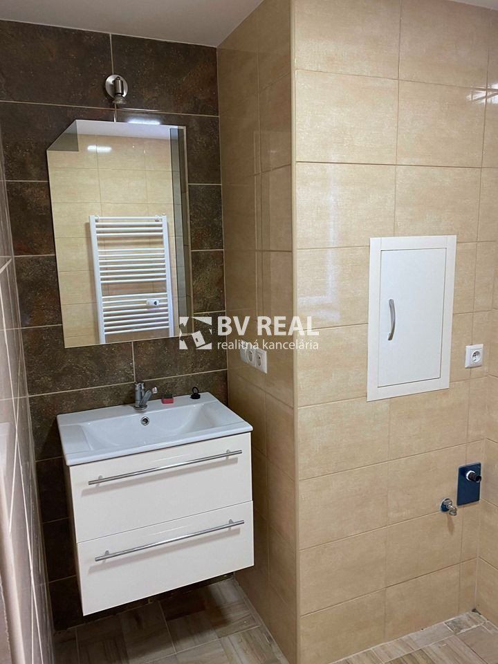 Murované bytové jadro, kde sa nachádza kúpeľňa so sprchovým kútom, umývadlom s kúpeľňovým nábytkom, priestorom na práčku, podsvietené zrkadlo, s novými dlažbami a obkladmi.