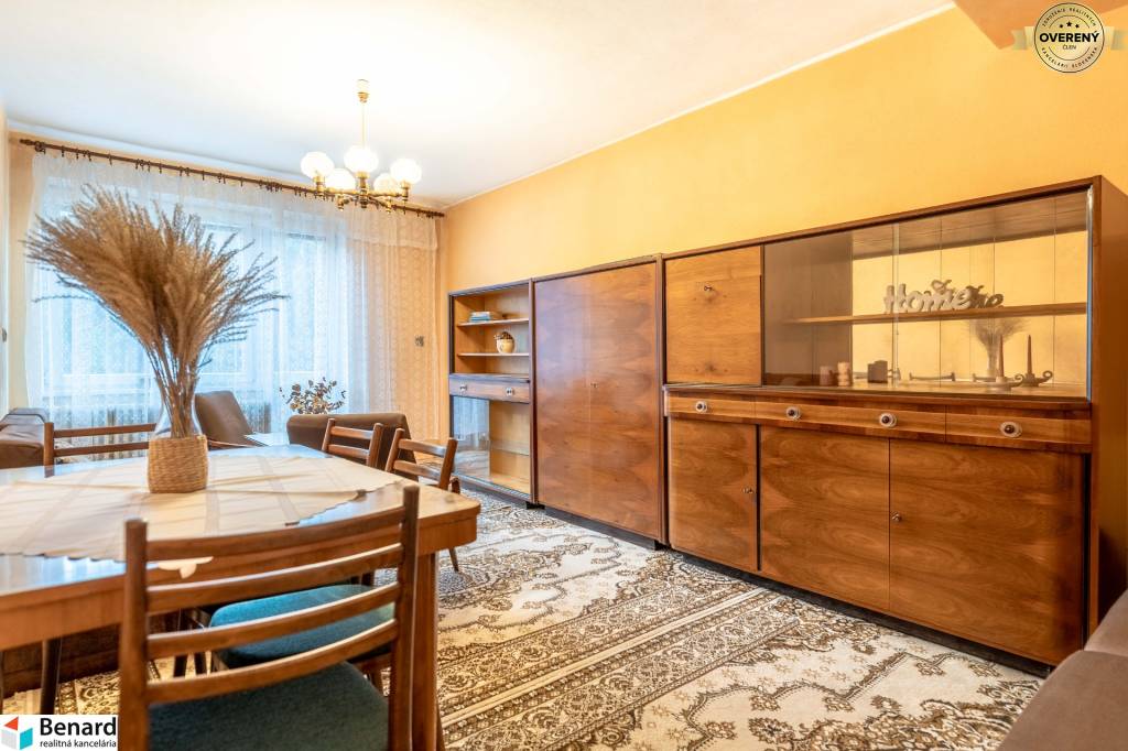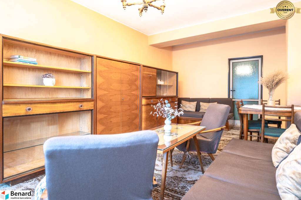 Dispozícia bytu je praktická a dobre riešená. Celková úžitková plocha je 51,16 m². Nehnuteľnosť je v pôvodnom stave, čo predstavuje ideálnu príležitosť pre nového majiteľa prispôsobiť si bývanie podľa vlastného vkusu bez kompromisov. Výhodou je, že byt už má plastové okná a murované jadro, ktoré bolo rekonštruované približne pred 10 rokmi. K dispozícii je aj pivnica a v bytovom dome je výťah.