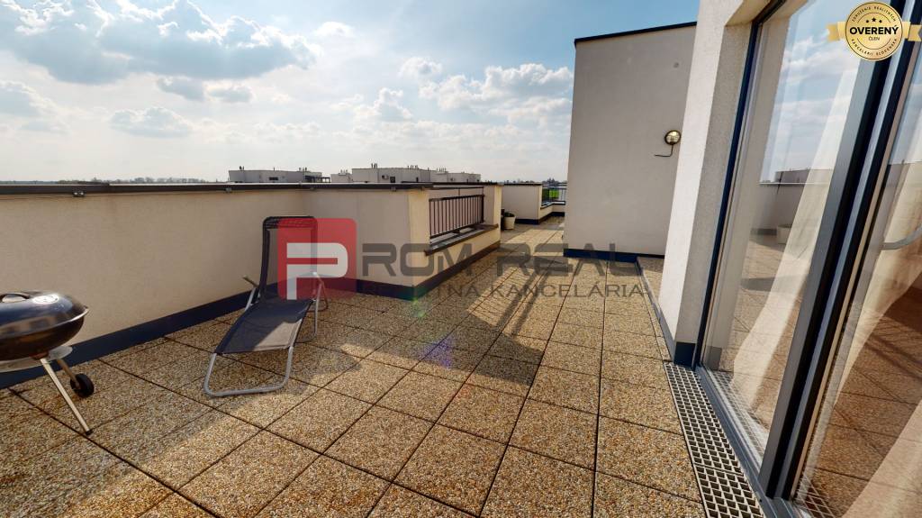 2. získate veľa priestoru v 3 izbách a rozľahlú, nadštandardnú terasu o veľkosti 88m2 z toho pochôdzna časť 62m2