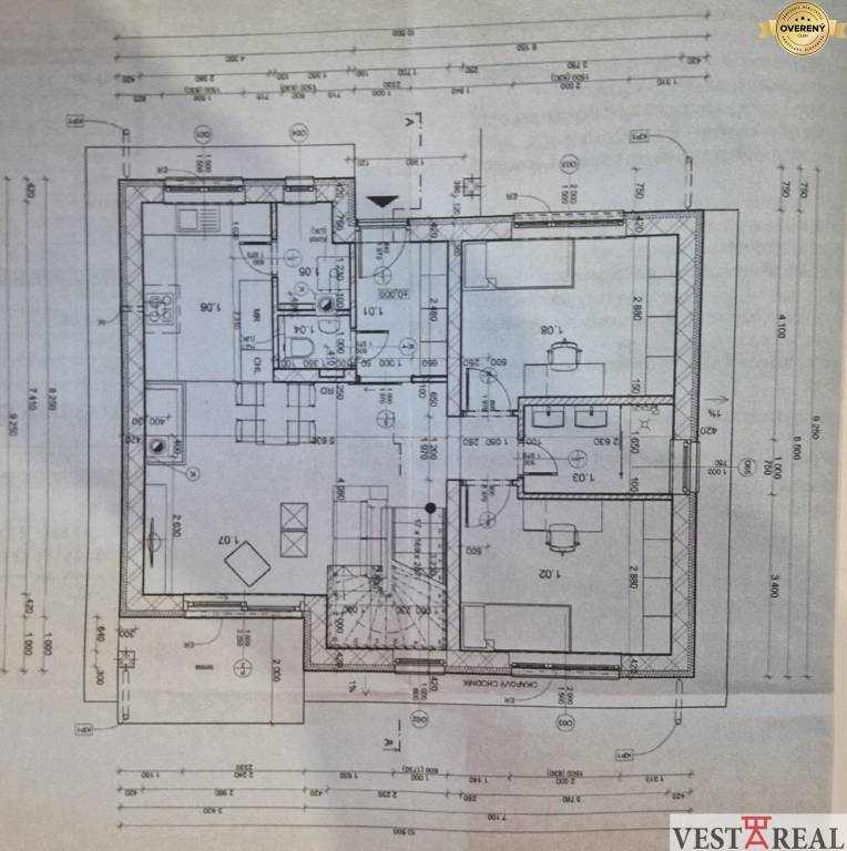 priestranná kuchyňa prepojená s obývačkou a výstupom na terasu s otváracou strechou