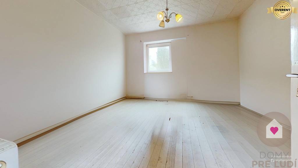 Realitná kancelárie Domy pre ľudí ponúka na predaj veľký pozemok o rozlohe 7445 m2 so starým rodinným dvojizbovým domom v pôvodnom stave so zastavanou o rozlohe 93,4 m2 s úžitkovou plochou 76,3 m2. V dome sú všetky inžinierske siete - voda, plyn, kanalizácia, elektrina. Pozemok za domom s rozmermi 31x230 m je vhodný na výstavbu rodinných domov.