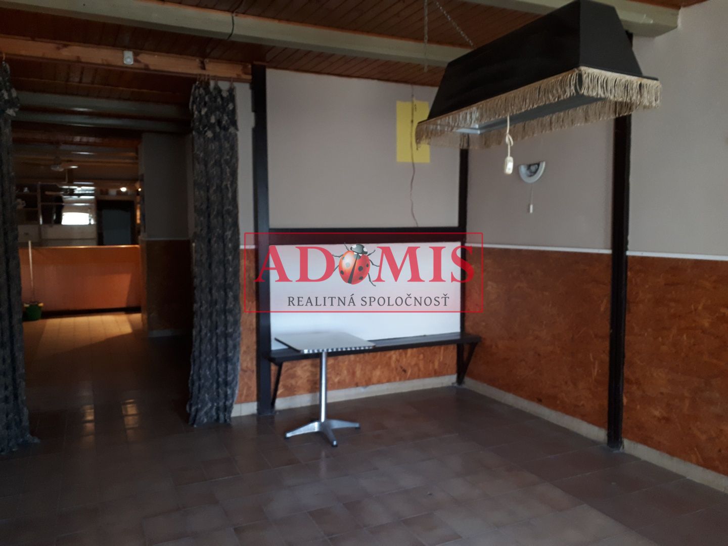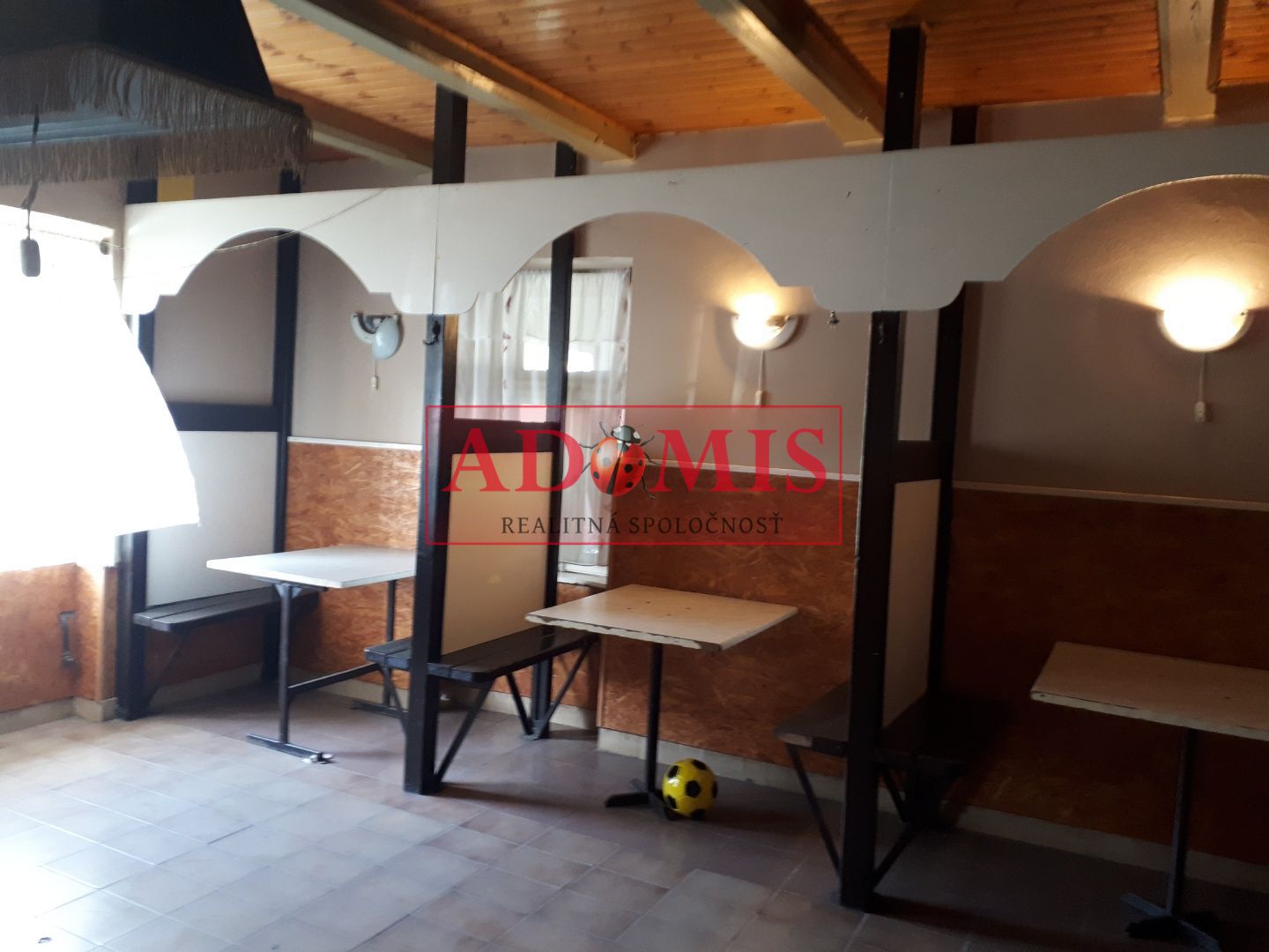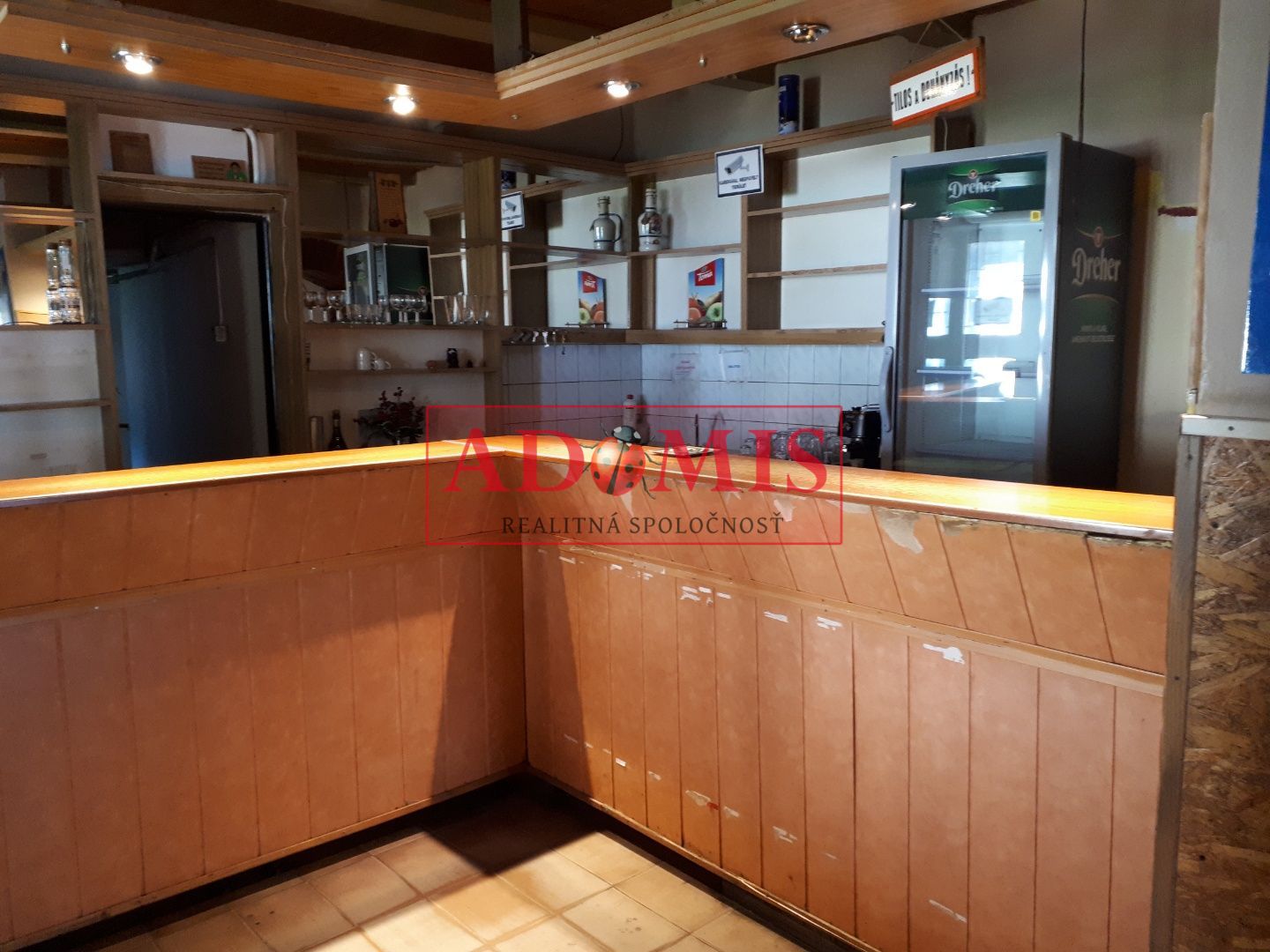 Prevádzka pozostáva z troch miestností, v prednej časti je barový pult, kachľová pec, stoly, stoličky rozlohou cca 80 m2, za priestorom pre návštevníkov sú dve miestnosti využívané ako skladový a kancelársky priestor, k dispozícii samostatné WC a umývadlo pre návštevníkov.