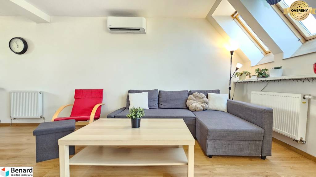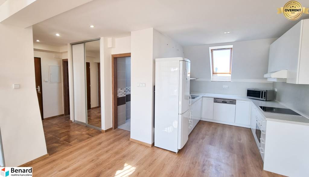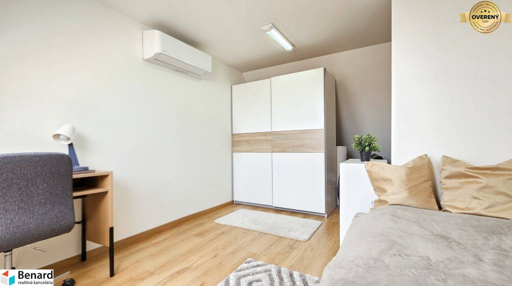 Rozloha bytu je 103 m2. Bytovka je situovaná v tichej časti, mimo hlavnej cesty, čo zabezpečuje tiché bývanie. Byt je slnečný a teplý. V byte je klimatizačná jednotka, ktorá Vám zabezpečí príjemné osvieženie počas letných mesiacov. Byt má balkón a nachádza sa na 3. poschodí.