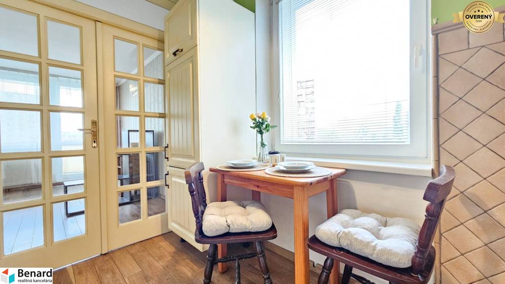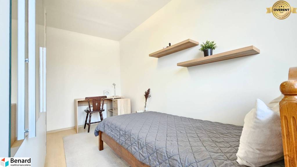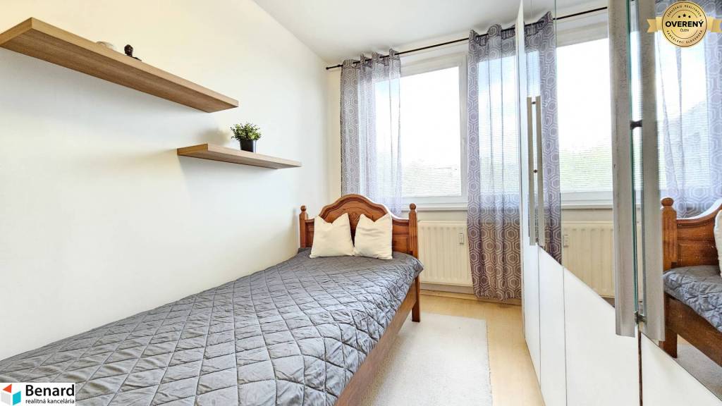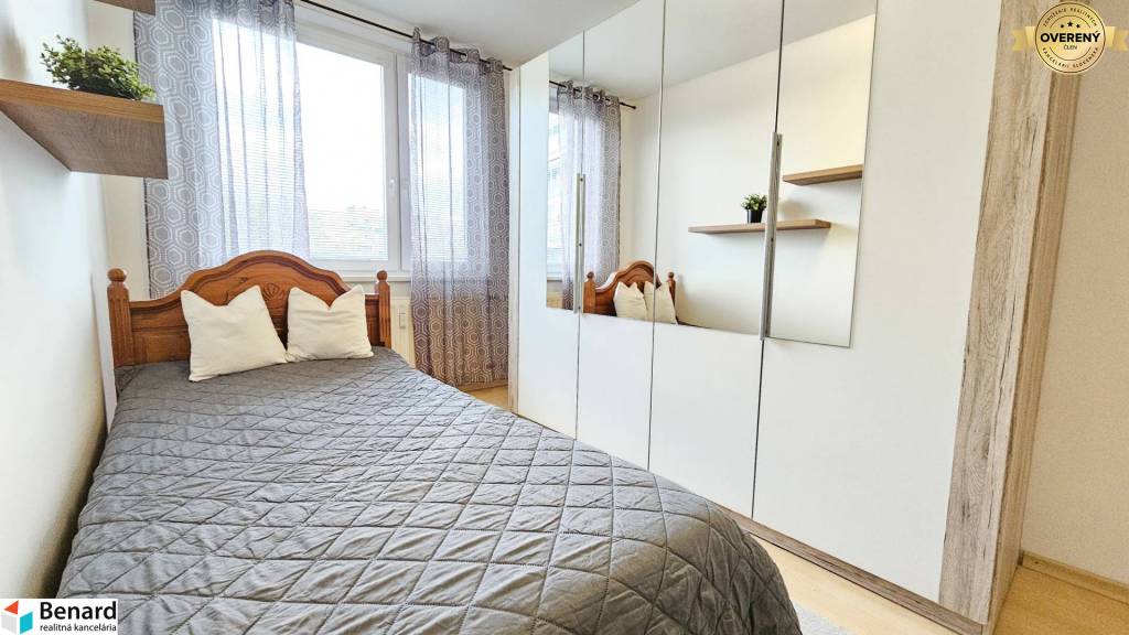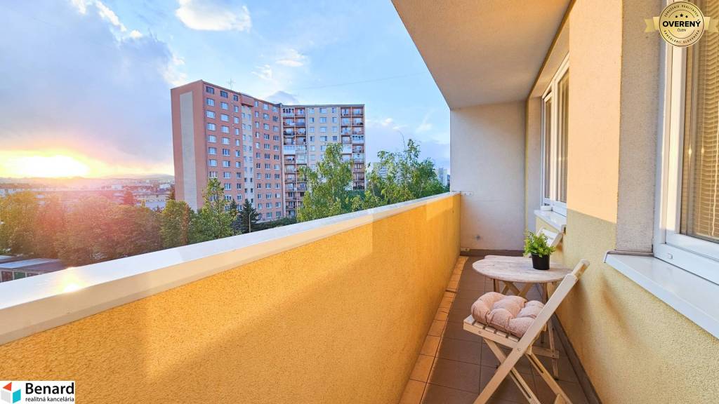 Byt je zariadený a veľkým benefitom je jeho loggia, kde si pri krásnom západe slnka môžete vychutnávať voľné chvíle s obľúbeným nápojom. Rozloha bytu je 70 m2, jeho orientácia je V-Z a nachádza sa na ideálnom 4. poschodí v zateplenom byt. dome.