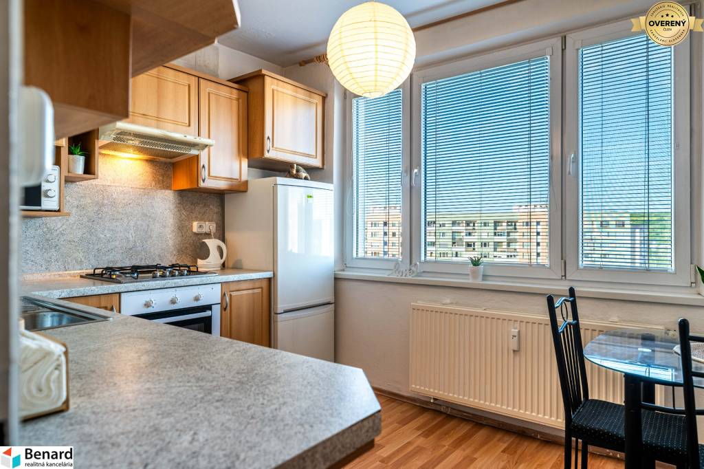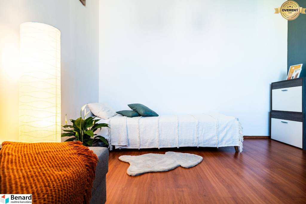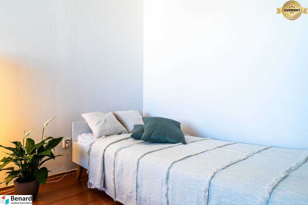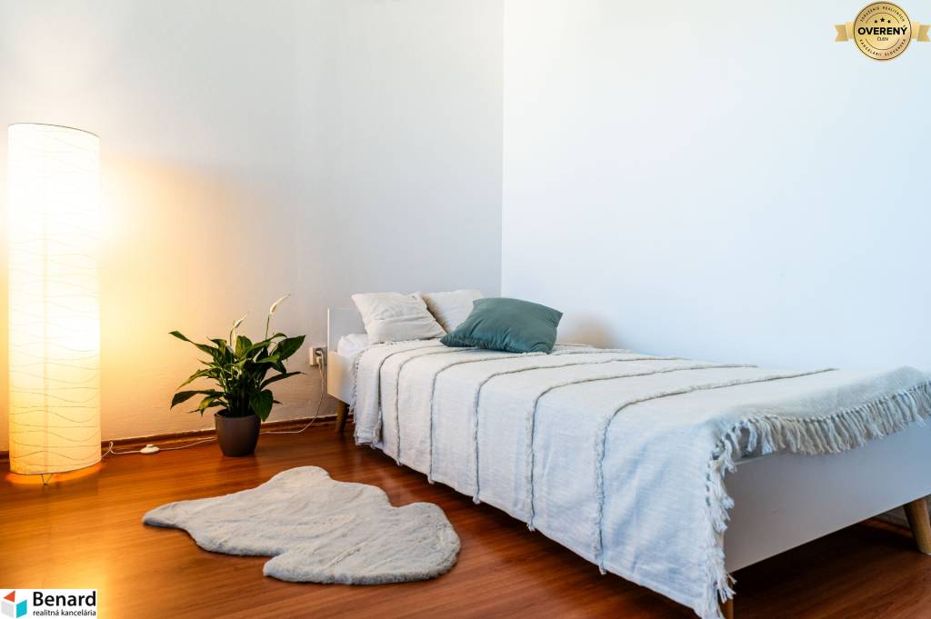 Byt je kompletne zariadený a veľkým benefitom je jeho zasklená loggia, kde si môžete vychutnávať voľné chvíle s obľúbeným nápojom v akomkoľvek počasí. Na chodbe je veľká, vstavaná skriňa, ktorá ponúka dostatok úložného priestoru a k dispozícii je aj pivnica. Prenájom je vhodný pre 1 osobu alebo pár. (V prípade, že ste pár, vieme Vám zabezpečiť dodanie ďalšej postele, keďže na byte je momentálne jedna posteľ.) Byt je na 12. poschodí z 13.p.