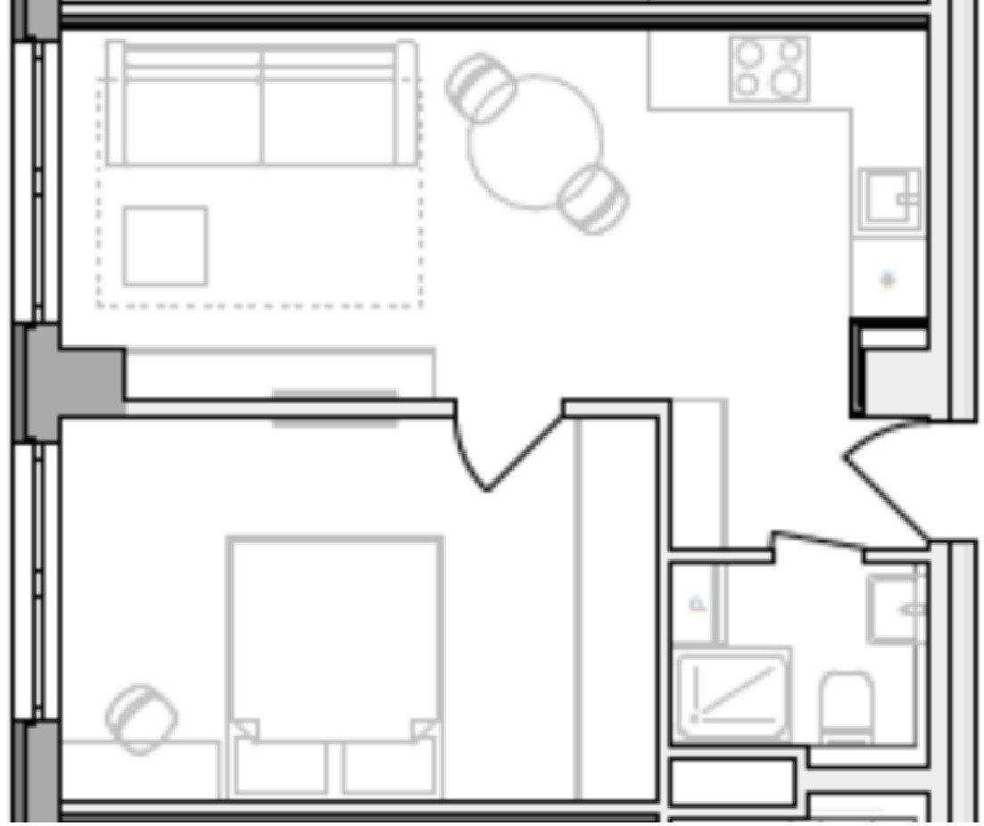Bytový dom je kompletne zrekonštruovaný, vrátane výmenených stúpačiek, vstupných priestorov, brány, schránok a má dva nové výťahy. Dispozične byt ponúka dve izby, kuchynský kút a kúpeľňu spojenú s WC. Byt je potrebné ešte dozariadiť kuchynskou linkou, spotrebičmi a nábytkom. K bytu nepatrí balkón ani pivnica.