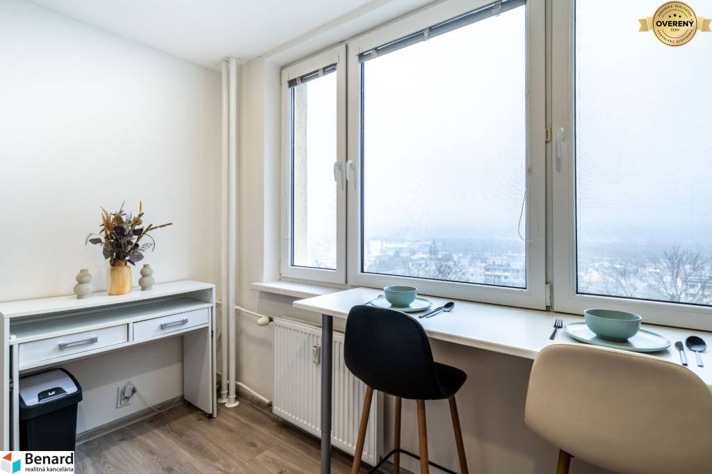 Byt je kompletne zariadený a k dispozícii je ihneď. Nachádza na 3. z 10 poschodí, v bytovom dome s dvoma výťahmi. Veľkým benefitom je zasklená loggia, kde si môžete vychutnávať voľné chvíle s obľúbeným nápojom v akomkoľvek počasí. Praktickým plusom je aj veľký kumbál na chodbe, ktorý poskytuje dostatok úložného priestoru. Prenájom je vhodný pre jednotlivca alebo pár.