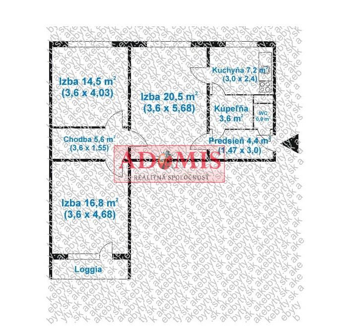 Úžitková plocha bytu je 74 m2+3,5m2 zasklená loggia orientovaná na JZ.