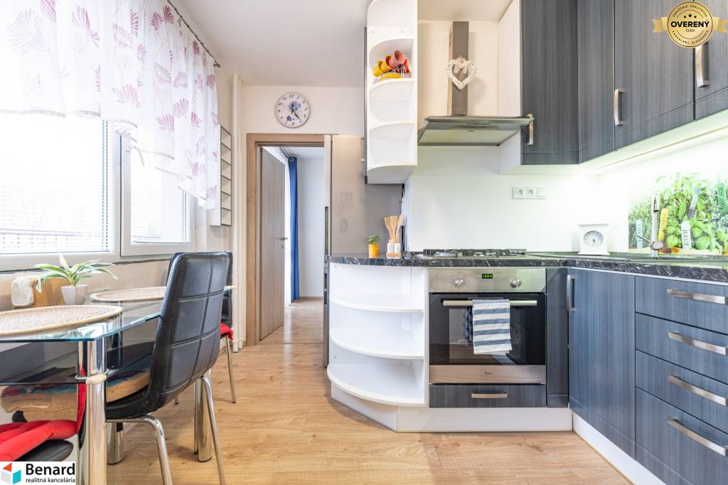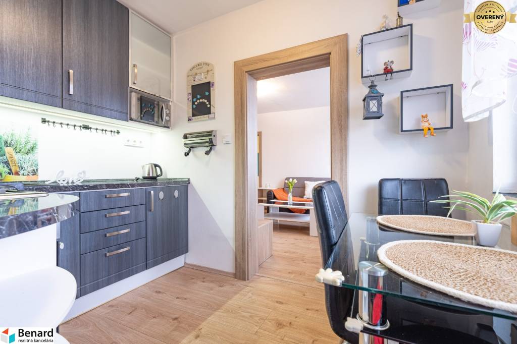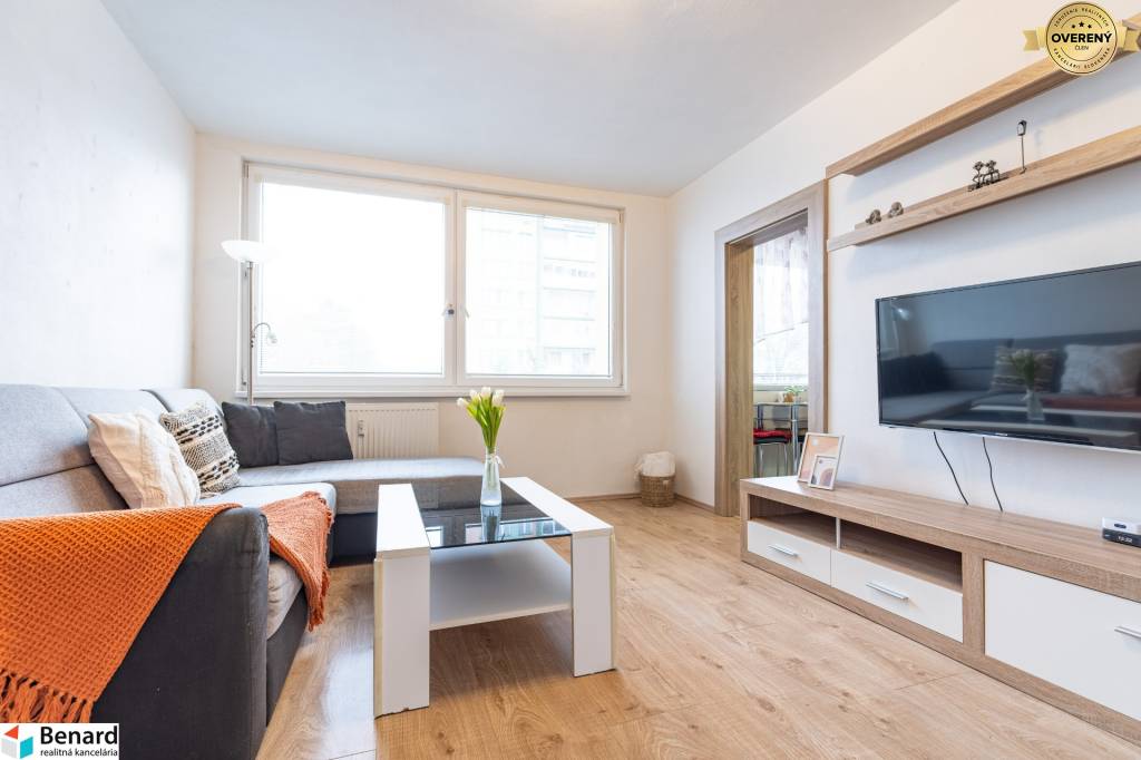 Byt je kompletne zariadený a veľkým benefitom je jeho loggia, kde si môžete vychutnávať voľné chvíle s obľúbeným nápojom. Je tu dostatok úložného priestoru a k dispozícii je aj kumbál, ktorý sa nachádza na chodbe, kde je byt umiestnený.
