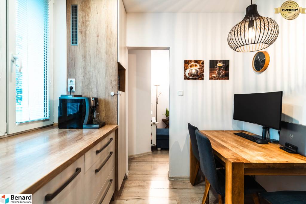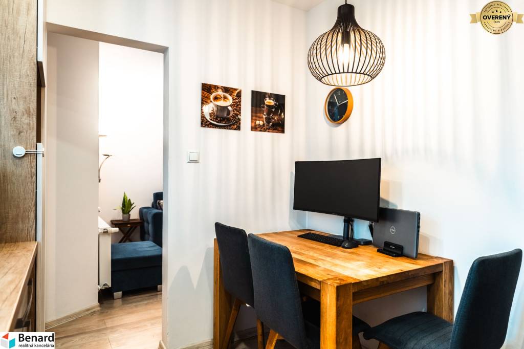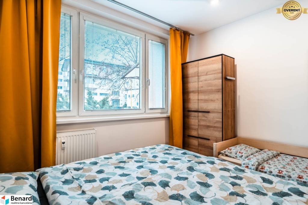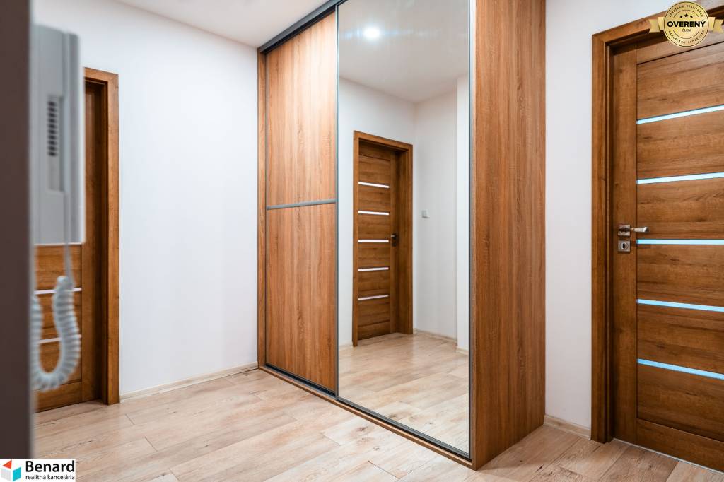 Byt sa nachádza na prízemí bytového domu, disponuje vnútornou loggiou a pred piatimi rokmi prešiel kompletnou rekonštrukciou. Je kompletne zariadený, takže nový majiteľ ho môže po kúpe ihneď užívať bez nutnosti ďalšieho zariaďovania. Praktické vstavané skrine v byte poskytujú dostatok úložného priestoru. Spálňa má samostatný vchod, čo zaručuje súkromie a kúpeľňa je oddelená od toalety. K bytu patrí aj murovaná pivnica. Celková výmera nehnuteľnosti je 51,57 m².