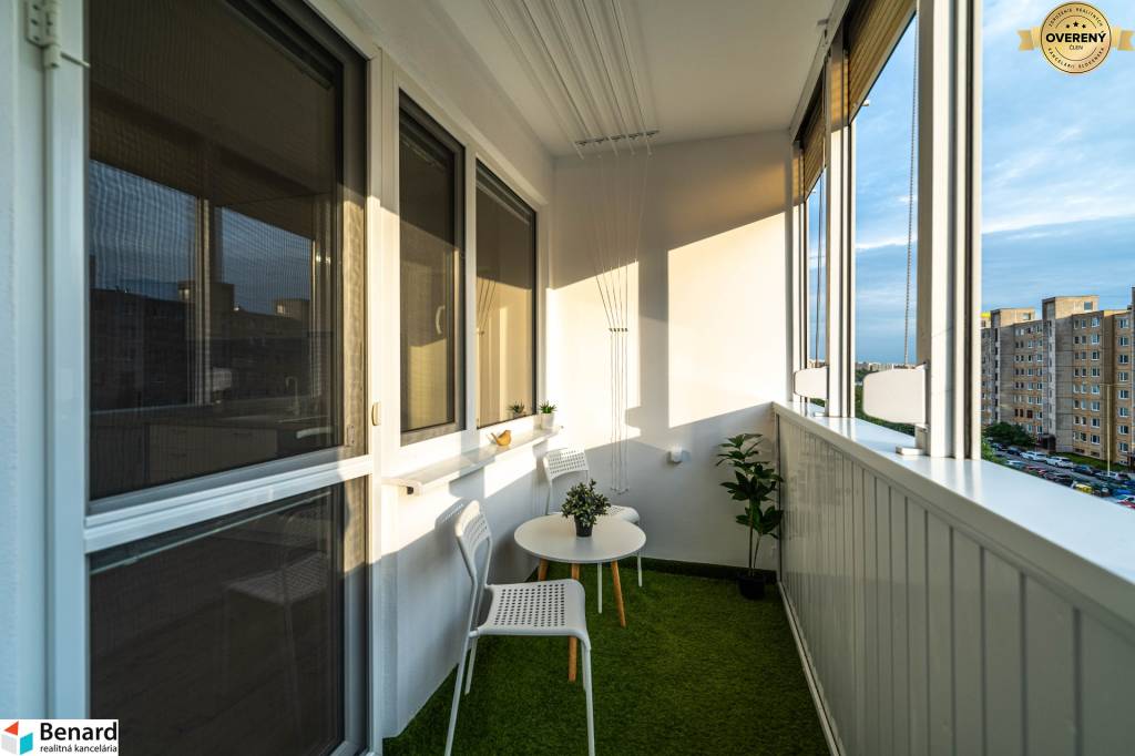 Byt sa nachádza na 4.poschodí, má pivnicu a loggiu, ktorá má vonkajšie rolety a vonkajšiu zásuvku na elektrický gril alebo klimatizáciu. Viete si tak užívať voľné chvíle v akomkoľvek počasí. V lete Vás rolety ochránia pred priamym slnečným žiarením a v zime Vás ochránia pred vetrom, dažďom a snehom.
