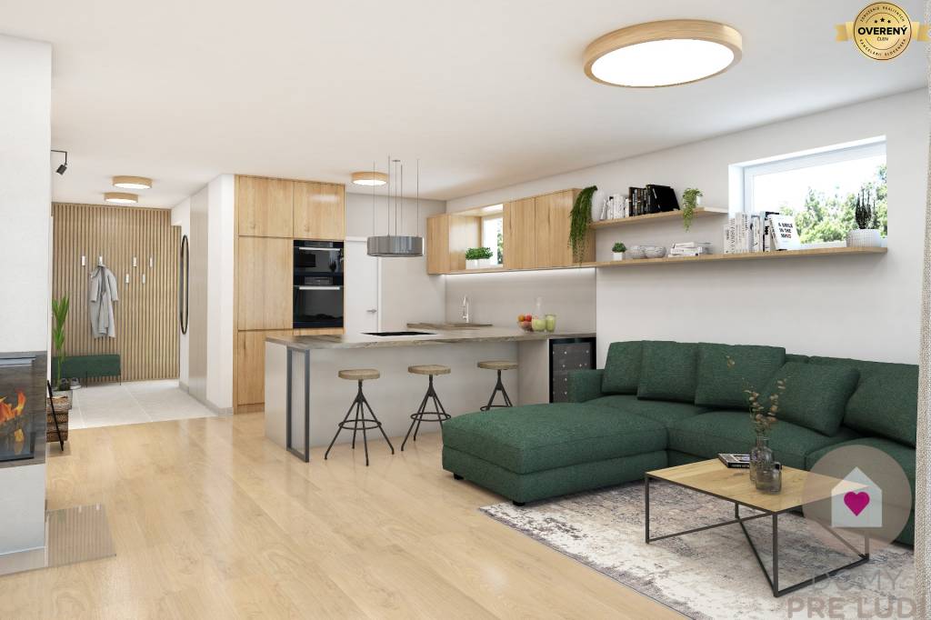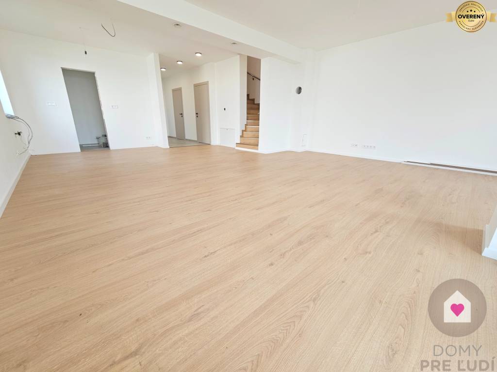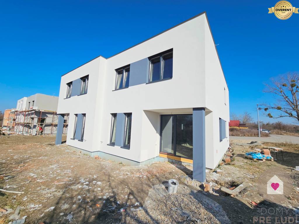 Dom sa predáva v štádiu HOLODOM (s vnútornými omietkami vymaľovaný na bielo, s osadenými vypínačmi a zásuvkami, kompletným podlahových kúrením vrátane TEPELNÉHO ČERPADLA so zásobníkom, prípravou na vonkajšie žalúzie a prípravou na alarm), S DOKONČENÝM EXTERIÉROM (fasádna farba, 3 parkovacie miesta a terasa zo zámkovej dlažby, oplotenie záhrady – pevné zvárané pletivo vrátane bráničky).