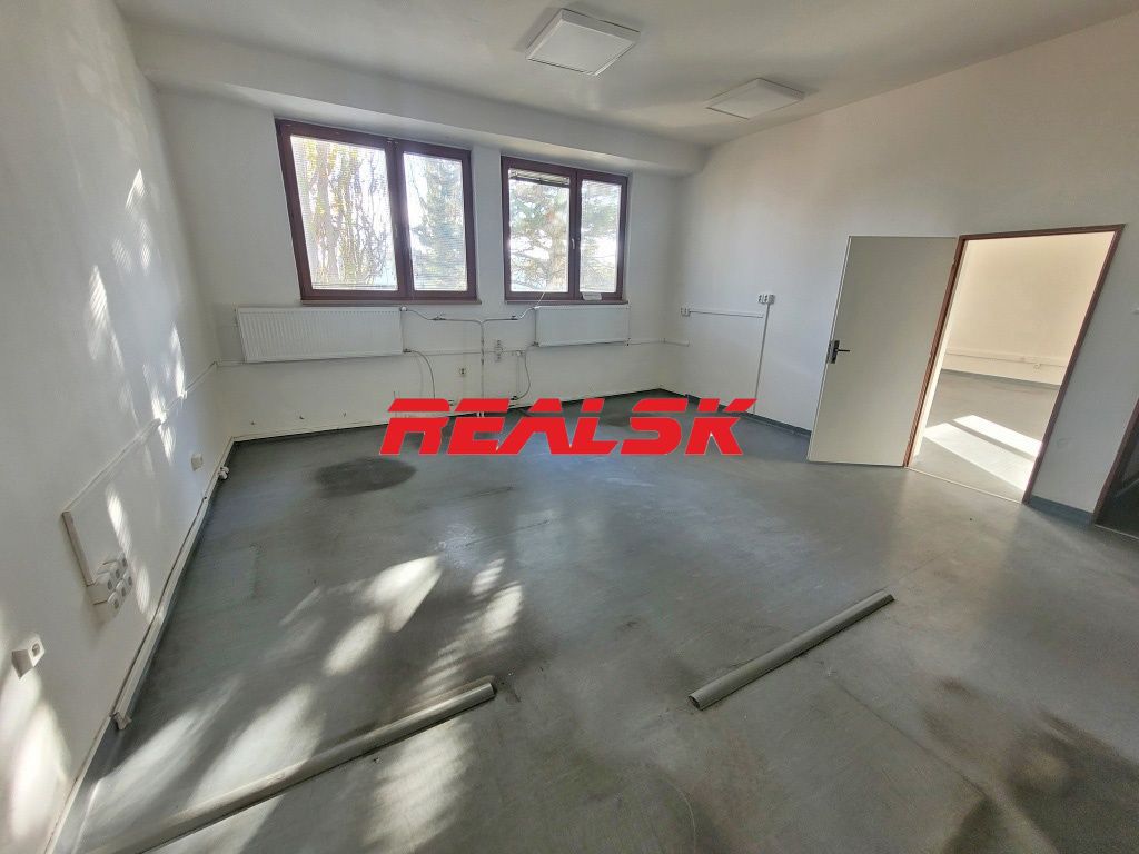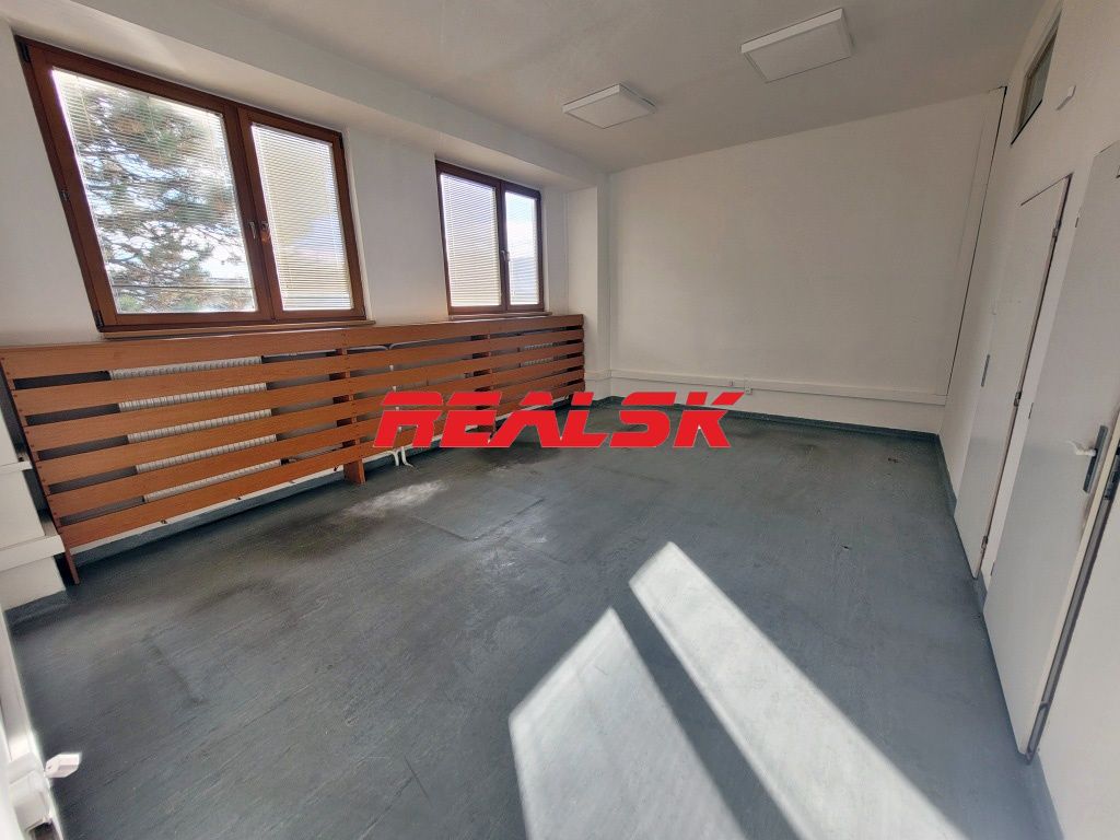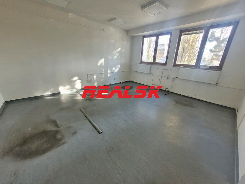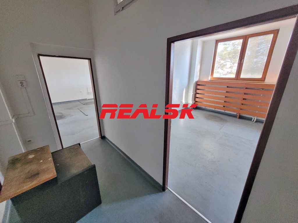 Ponúkame Vám na prenájom kancelárske priestory s možnosťou bezproblémového parkovania. K dispozícii je samostatná časť podlažia o výmere 70,50 m2, ktorú tvoria dve kancelárie a súkromná chodba. Kancelárie majú plochu 25,7 m2 a 31,2 m2. Sú čiastočne rekonštruované s možnosťou ďalšieho prispôsobenia (napríklad podlahy) podľa potrieb nájomcu. Na chodbe sa nachádza spoločná kuchynka a toalety. K dispozícii sú aj ďalšie kancelárske priestory a tiež jedáleň s možnosťou stravovania. Všetky priestory sa nachádzajú v súkromnom areáli v okrajovej časti Nitry, v blízkosti výjazdu na diaľnicu. Pred areálom je tiež zastávka MHD. Cena: 6,00 €/m2/mesiac bez DPH + energie. V cene nájmu je už započítané parkovanie. Realitný maklér: Lukáš Badinka, Tel.: 0904 64 74 34, E-mail: prenajom@realsk.sk