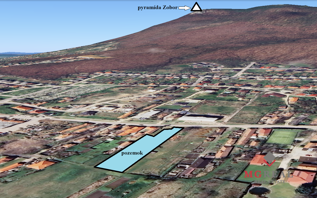 Pozemok s pekným výhľadom na Zobor, na ktorý je prístup priamo z hlavnej cesty alebo z druhej strany pozemku taktiež z vedľajšej ulice.