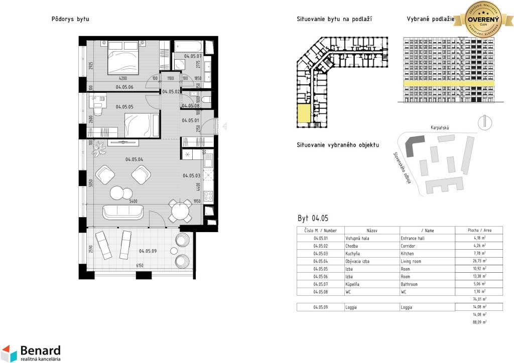 - Výmera 88,09 m2 s loggiou