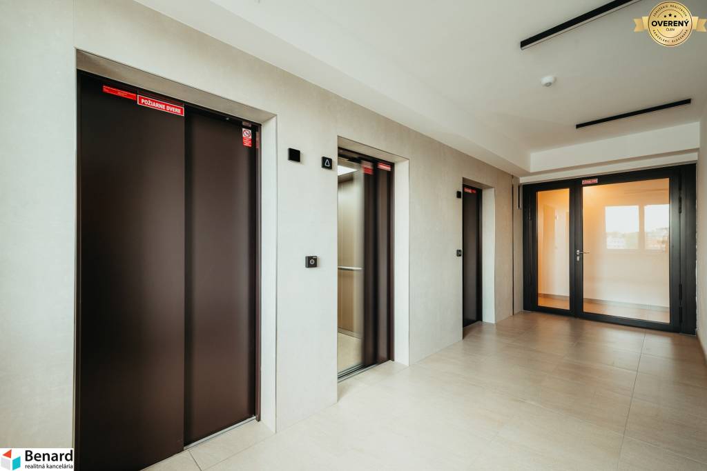 V celom bytovom dome sú 3 výťahy, dva osobné a jeden nákladný a všetky idú aj do suterénu bytového dumu.