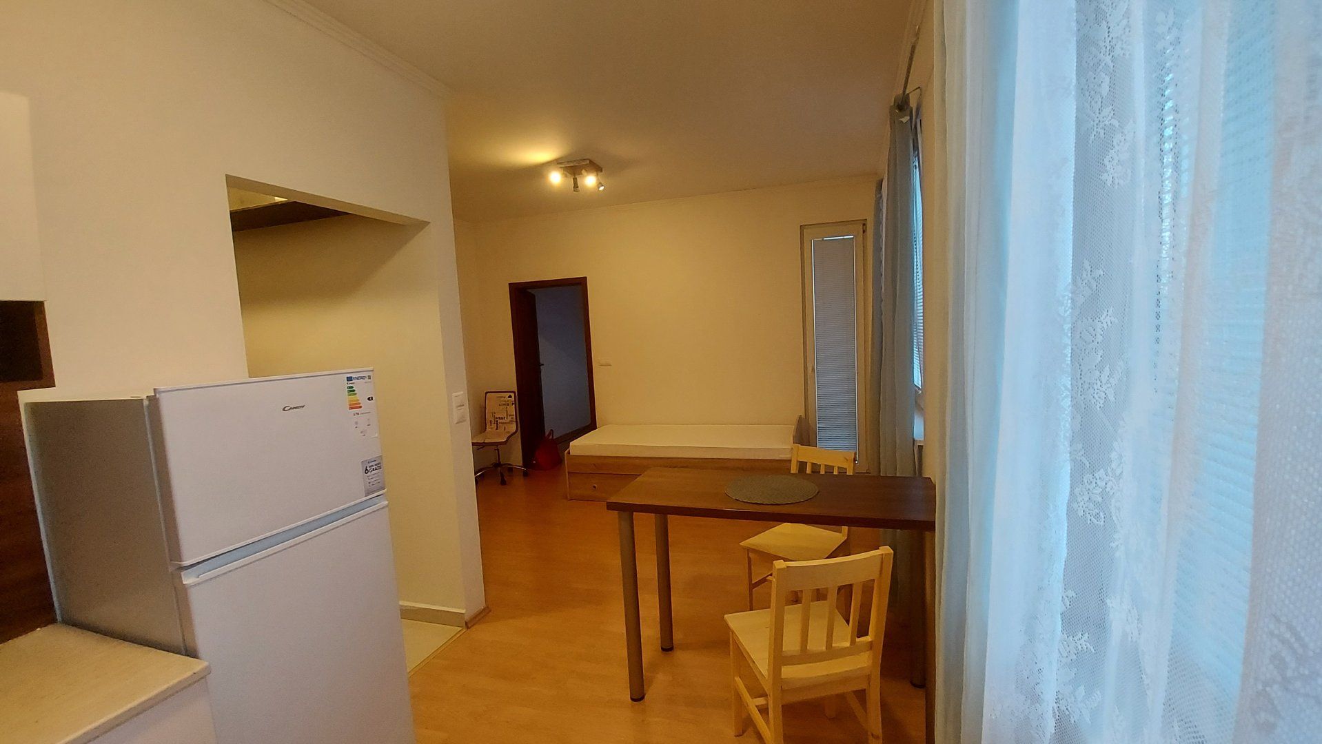 Byt sa nachádza na 5.poschodí bytového domu, bez výťahu ktorý prešiel kompletnou rekonštrukciou. V celom byte sú plastové okná, v izbe veľké francúzske okno, kuchynská linka s el. sporákom a el. rúrou, kúpeľňa je spojena s WC , dlažby a plávajúca podlaha, murované jadro, atď. Byt pozostáva zo vstupnej chodby, kúpeľňou, kuchyňa spojená s obývačkou a izba s balkónom.