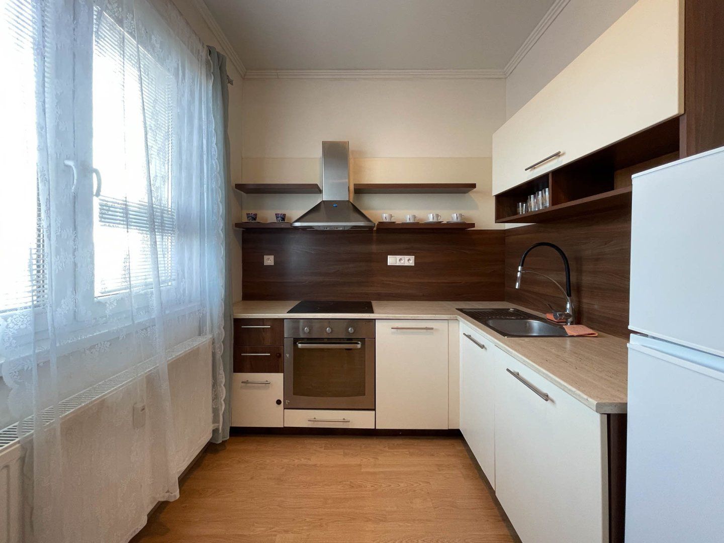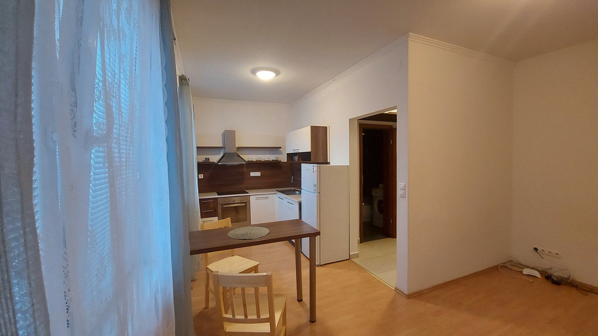 Byt sa nachádza na 5.poschodí bytového domu, bez výťahu ktorý prešiel kompletnou rekonštrukciou. V celom byte sú plastové okná, v izbe veľké francúzske okno, kuchynská linka s el. sporákom a el. rúrou, kúpeľňa je spojena s WC , dlažby a plávajúca podlaha, murované jadro, atď. Byt pozostáva zo vstupnej chodby, kúpeľňou, kuchyňa spojená s obývačkou a izba s balkónom.