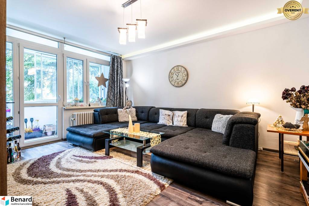 Veľkým benefitom nehnuteľnosti je kvalitná rekonštrukcia a zasklená loggia, vďaka čomu si ju môžete vychutnať aj v prípade nepriaznivého počasia. Vstup na loggiu je z obývačky. Izby sú veľké a poskytujú tak dostatok priestoru na trávenie príjemných chvíľ v novom domove. Úžitková plocha je 70m2. K dispozícii je aj samostatná pivnica, ktorá má veľkosť 2,4 m2. Byt sa nachádza na vyvýšenom prízemí bytového domu (pod bytom sú pivnice).