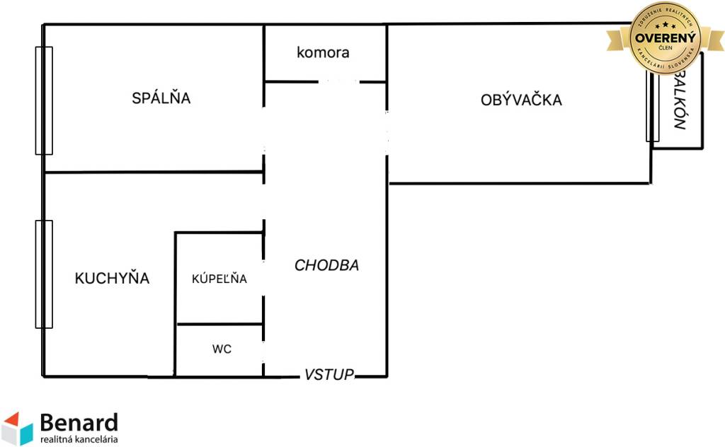 Byt je v pôvodnom stave (vymenené sú okná a nový kotol), kúpou je hneď voľný.