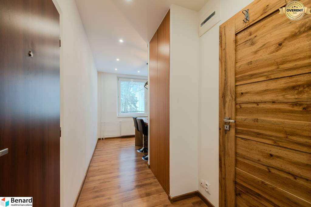 Byt je vhodný a vďaka lokalite a veľkosti vyhľadávaný pre podnájom, bez ďalších potrebných investícií. Nachádza sa na vyvýšenom prízemí 2-poschodového bytového domu, čo je pri sťahovaní a prenášaní ťažkých kusov nábytku veľkou výhodou. Aktuálne v ňom bývajú bezproblémoví nájomníci.