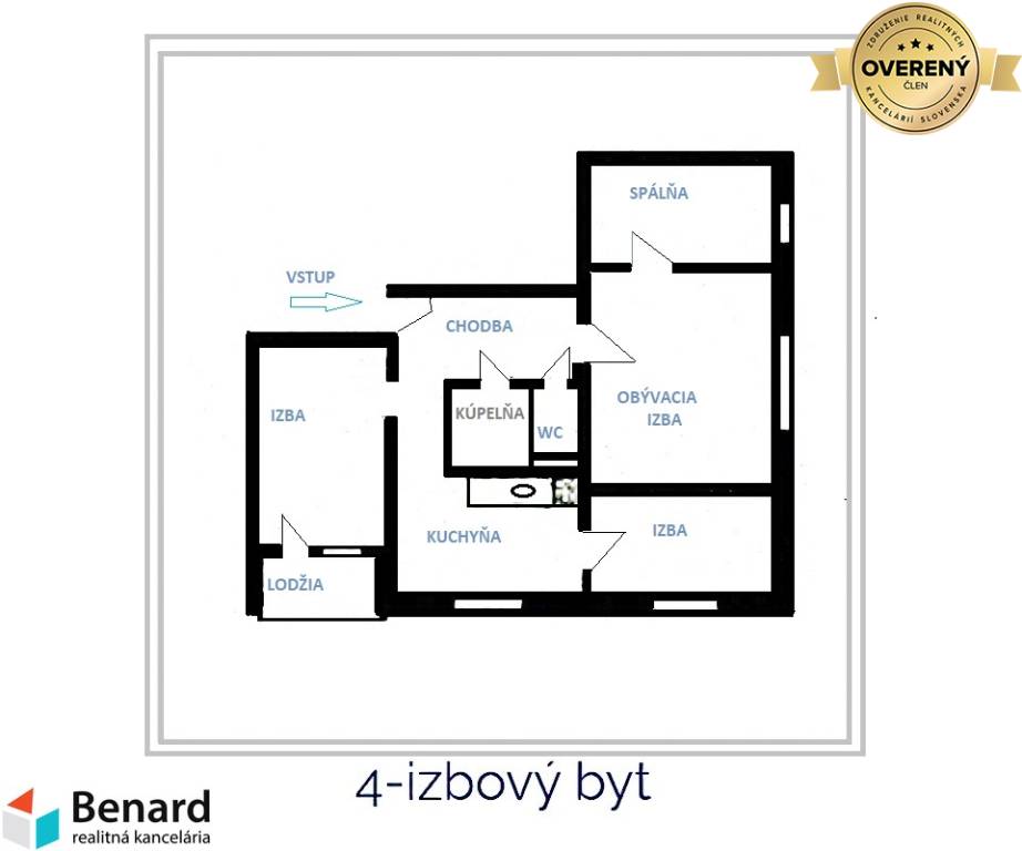 Pozostáva : chodba, kuchyňa, izba, izba, obývacia izba, spálňa, kúpeľňa, wc, lodžia.