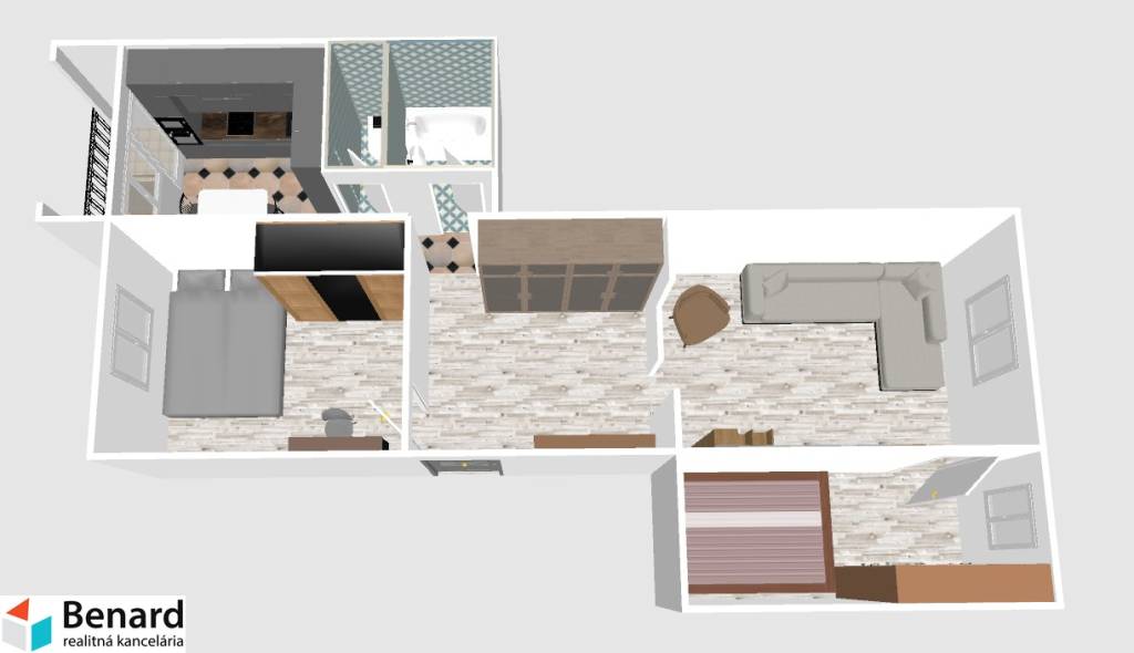 • Dispozícia: 2,5 izby (ideálne riešenie pre menšiu rodinu, pracovňu alebo šatník)
