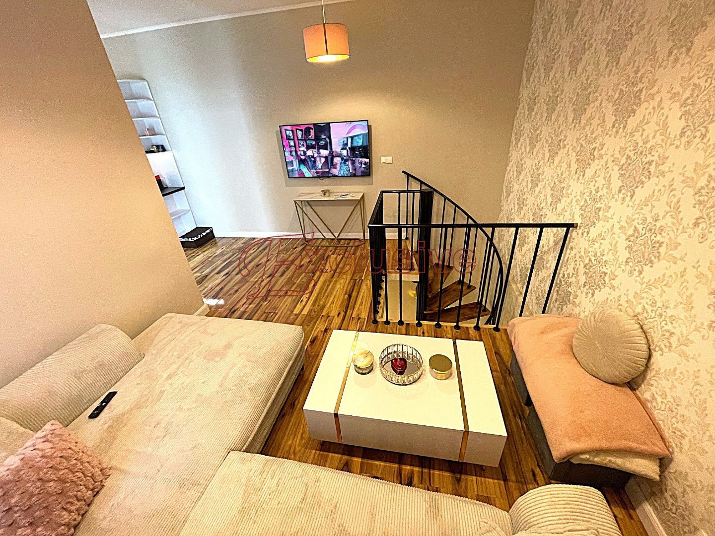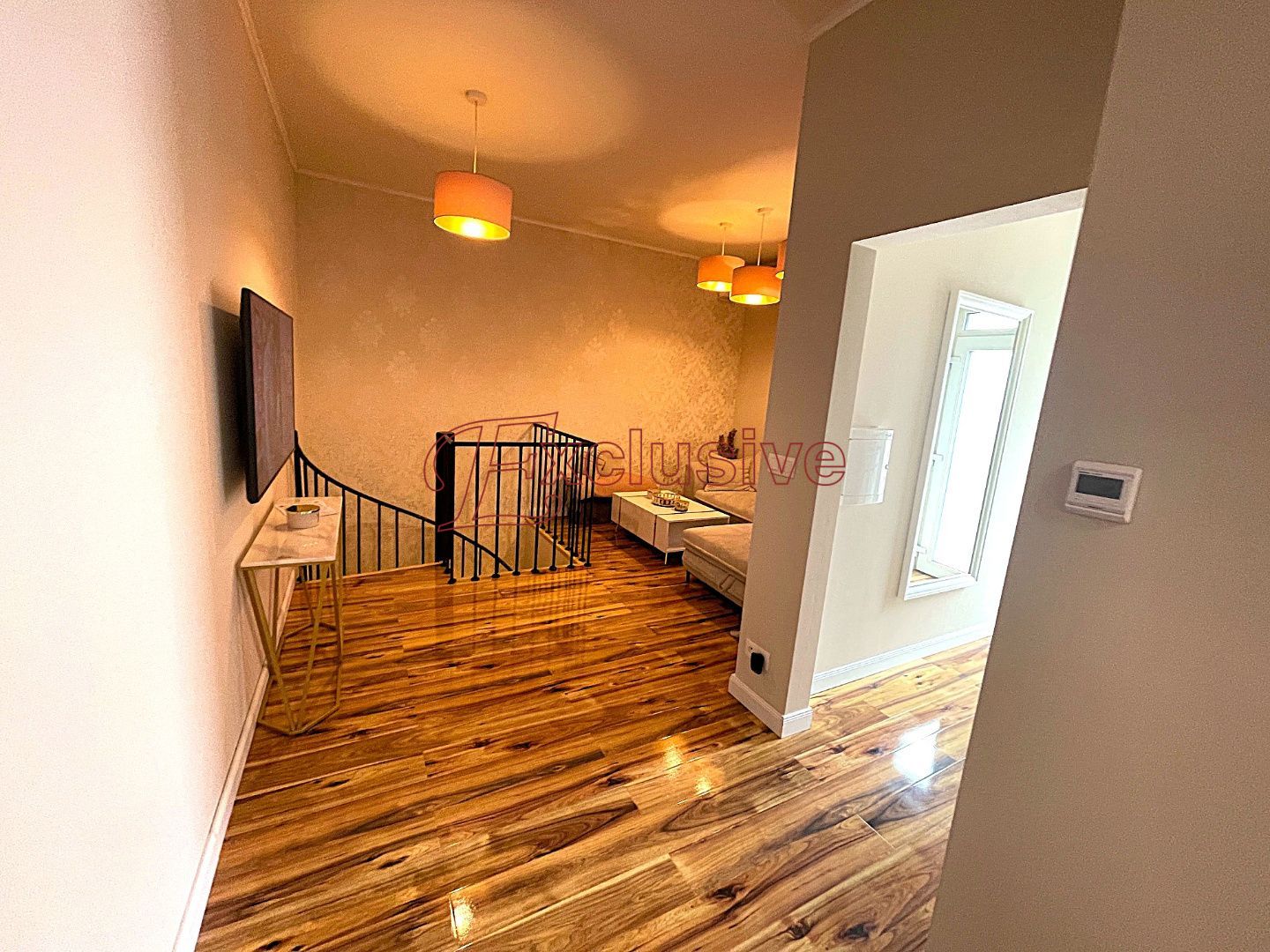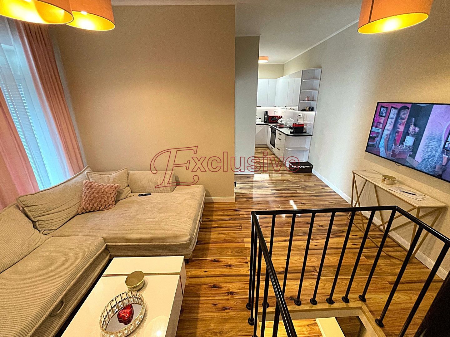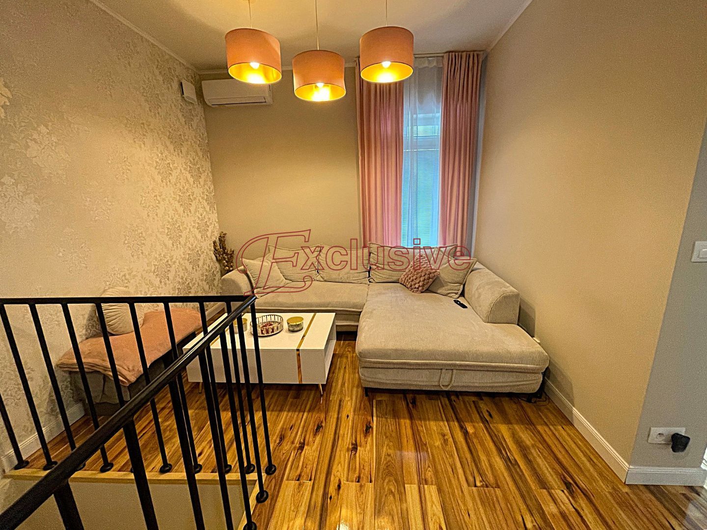 Exclusive Vám v obci Rovinka ponúka na predaj 2 izbový apartmánový byt s úžitkovou plochou 66 m2. Nachádza sa na prízemí bytového domu kolaudovanom v roku 2024. Dispozičné riešenie bytu, poschodie: vstupná chodba, obývacia izba s kuchyňou zariadenou štandardnými spotrebičmi vrátane umývačky riadu, kúpeľňa s umývadlovou zostavou, sprchovacím kútom WC, miesto pre práčku. Do spodnej časti bytu vedie dizajnové točité schodisko, nachádza sa tu spálňa s veľkým šatníkom. V spálni nie je situované okno, je tu však zavedená rekuperačná jednotka, podlahové kúrenie. Podlaha v byte plávajúca v kombinácii s dlažbou, okná plastové. V obývacej izbe klimatizácia, kúrenie v byte podlahové, mesačné náklady na bývanie vo výške 120 €. V byte zavedený optický internet. Nehnuteľnosť sa nachádza v dobrej lokalite obce, v tesnej blízkosti nákupné centrum, reštaurácie, fitness. Dobrá dostupnosť do Bratislavy vzdialenej 12 km.