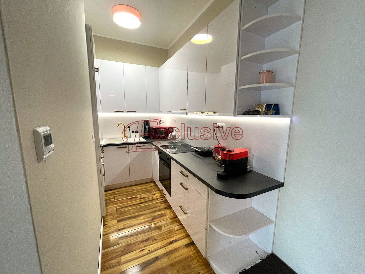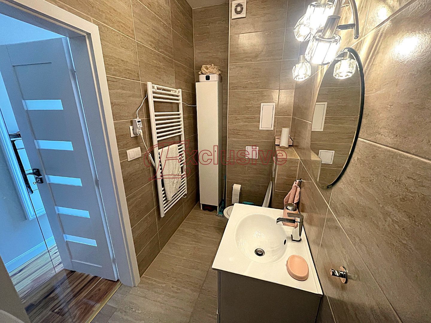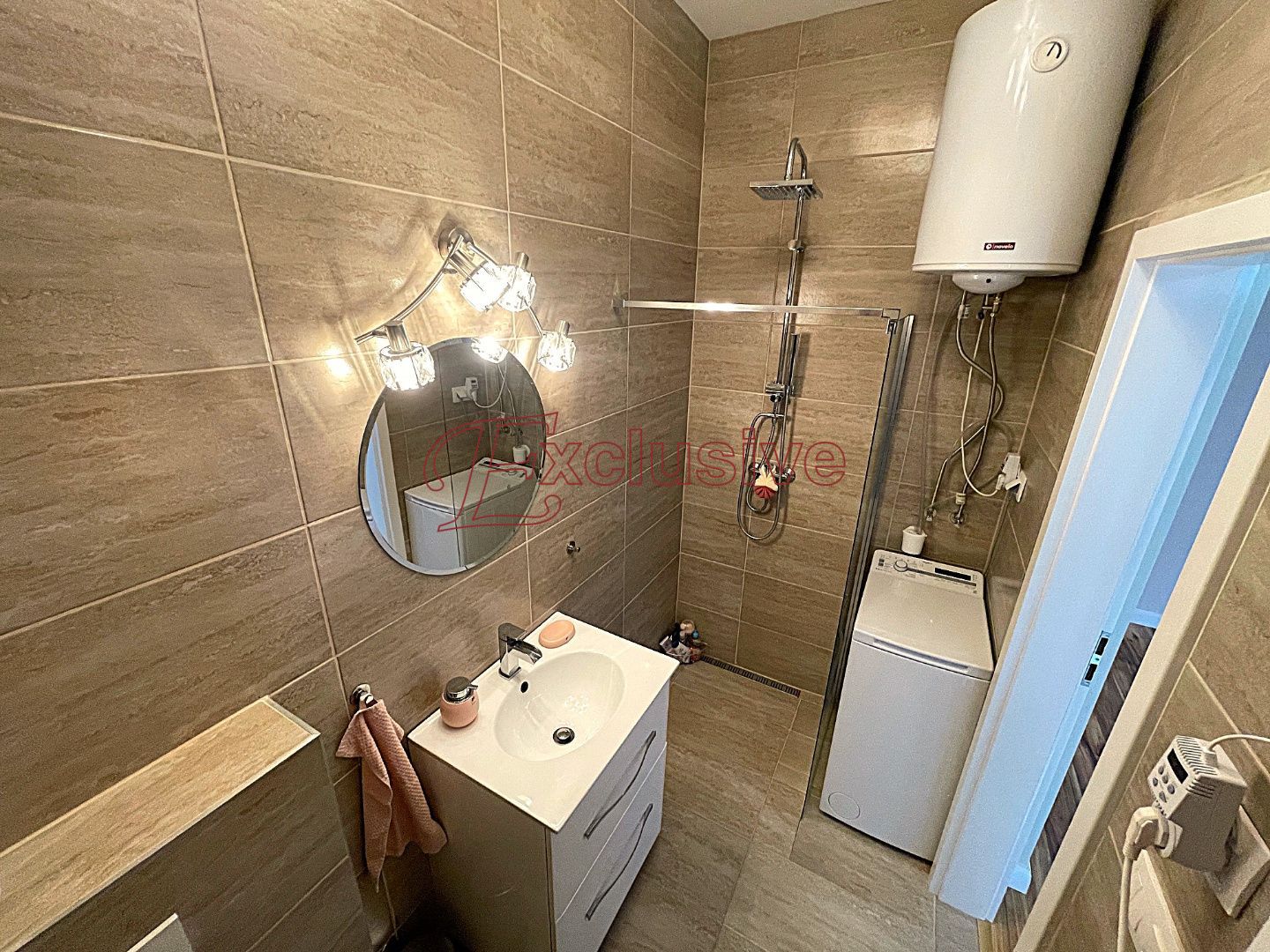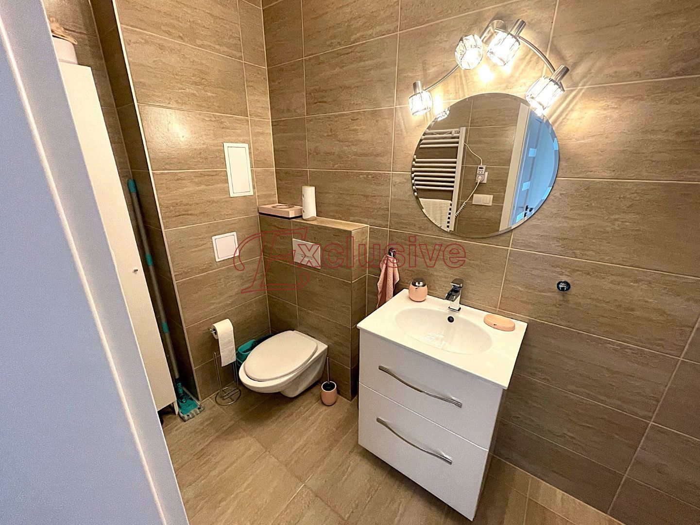 Exclusive Vám v obci Rovinka ponúka na predaj 2 izbový apartmánový byt s úžitkovou plochou 66 m2. Nachádza sa na prízemí bytového domu kolaudovanom v roku 2024. Dispozičné riešenie bytu, poschodie: vstupná chodba, obývacia izba s kuchyňou zariadenou štandardnými spotrebičmi vrátane umývačky riadu, kúpeľňa s umývadlovou zostavou, sprchovacím kútom WC, miesto pre práčku. Do spodnej časti bytu vedie dizajnové točité schodisko, nachádza sa tu spálňa s veľkým šatníkom. V spálni nie je situované okno, je tu však zavedená rekuperačná jednotka, podlahové kúrenie. Podlaha v byte plávajúca v kombinácii s dlažbou, okná plastové. V obývacej izbe klimatizácia, kúrenie v byte podlahové, mesačné náklady na bývanie vo výške 120 €. V byte zavedený optický internet. Nehnuteľnosť sa nachádza v dobrej lokalite obce, v tesnej blízkosti nákupné centrum, reštaurácie, fitness. Dobrá dostupnosť do Bratislavy vzdialenej 12 km.
