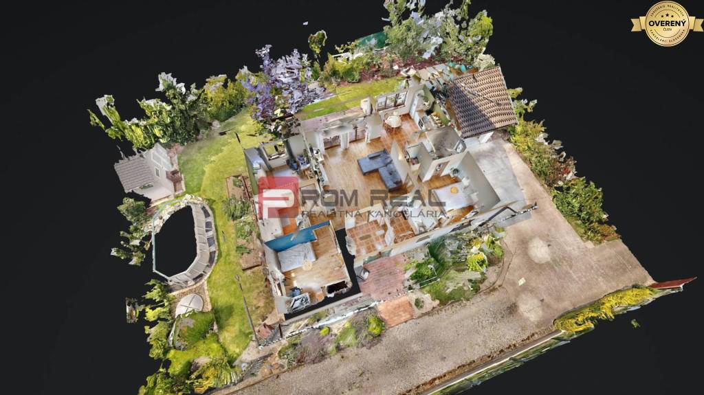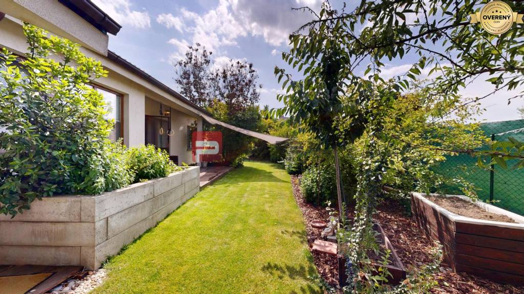 Dom sa nachádza na pozemku s rozlohou 406 m2 a vedie k nemu súkromná prístupová cesta uzatvorená el. bránou. Na pozemku sa aktuálne nachádza bazén a udržiavaná záhrada.