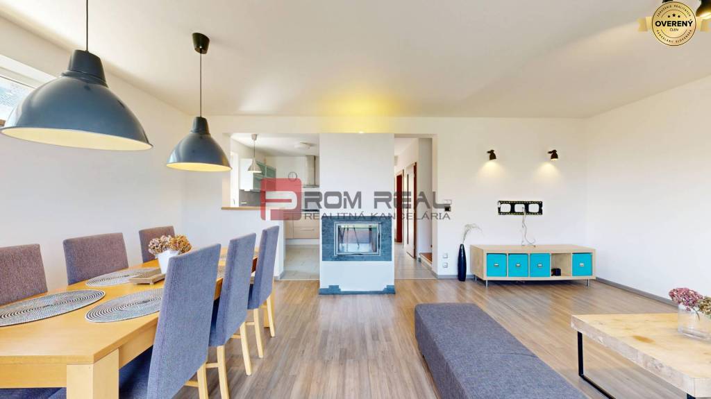 Tepelný komfort zabezpečuje podlahové plynové kúrenie napojené na plynový kotol. Súčasťou obývacej izby je aj krb s elektronickým ovládaním. Dom je zároveň pripravený na inštaláciu rekuperácie, ktorá umožňuje efektívne vetranie. Pre zvýšenie bezpečnosti je nehnuteľnosť vybavená alarmovým systémom. V spálni a šatníku na poschodí sa nachádzajú elektricky ovládané rolety.
