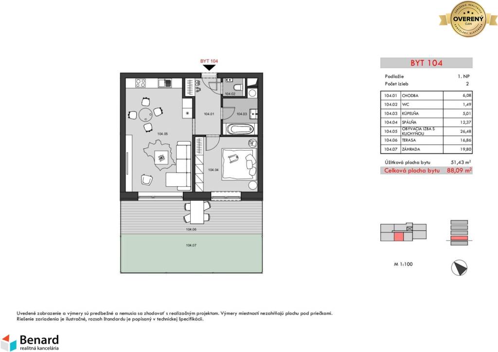 BYTOVÝ DOM RELAX - 2 IZBOVÝ BYT, ZÁHRADKA, TERASA, č. 104
