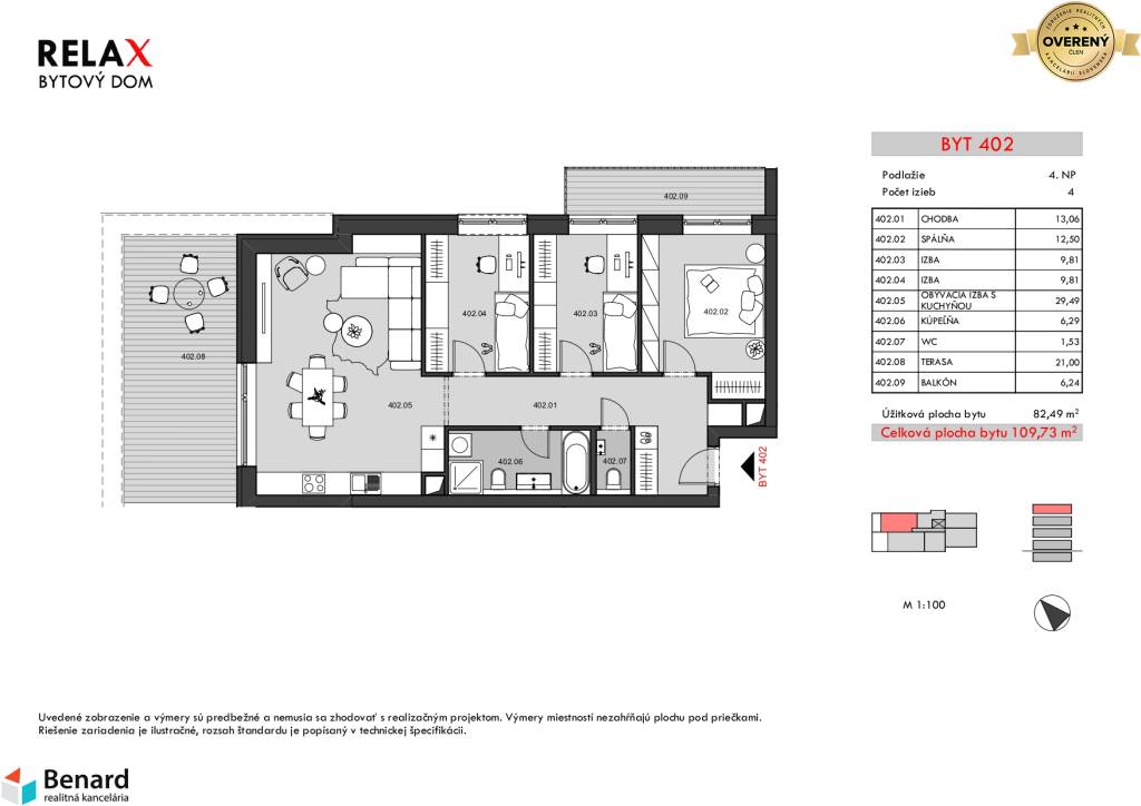 BYTOVÝ DOM RELAX - 4 IZBOVÝ BYT, BALKÓN, TERASA, č. 402