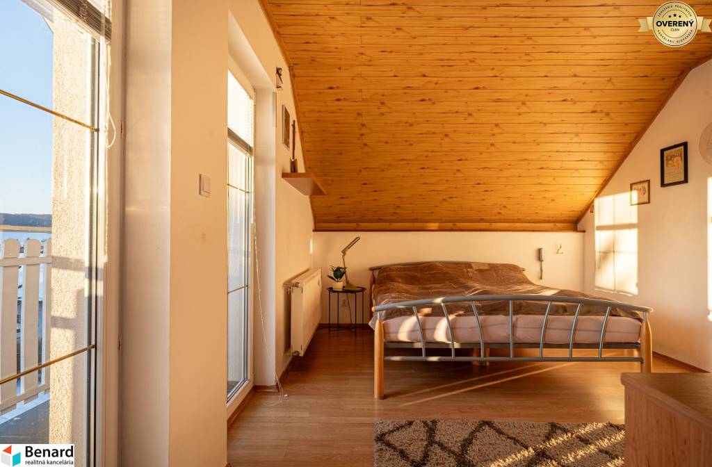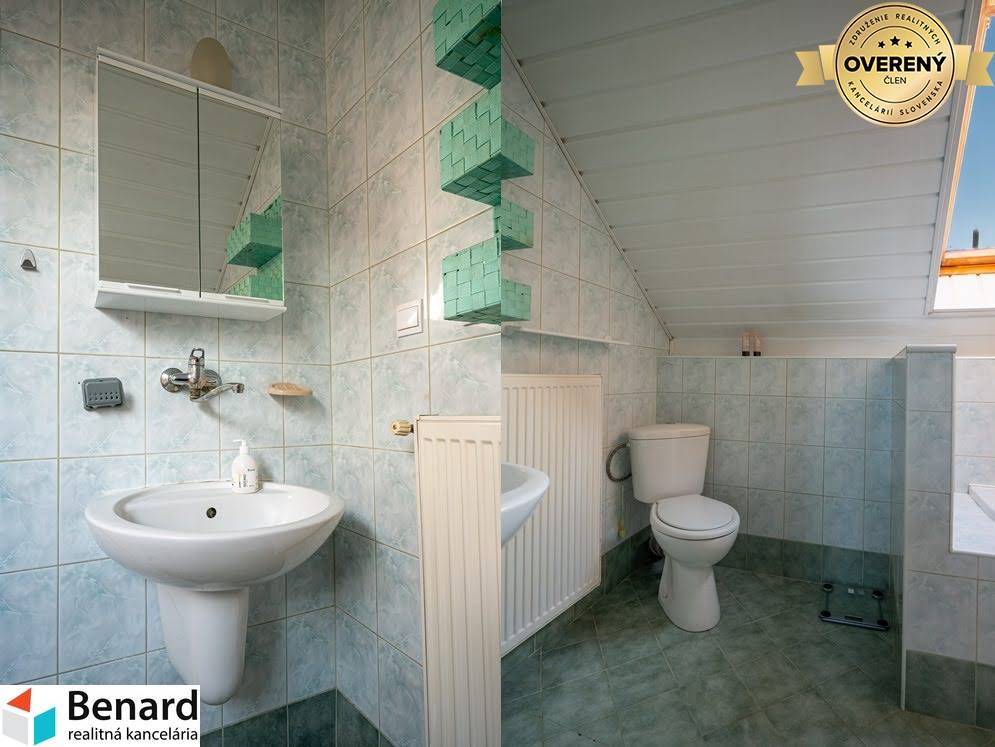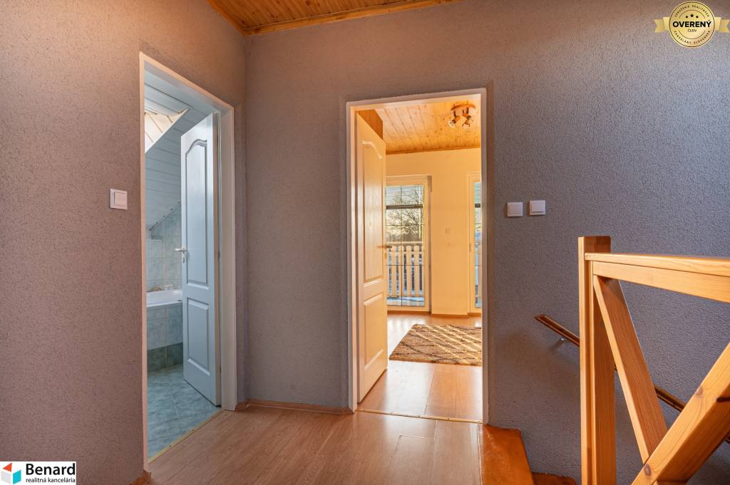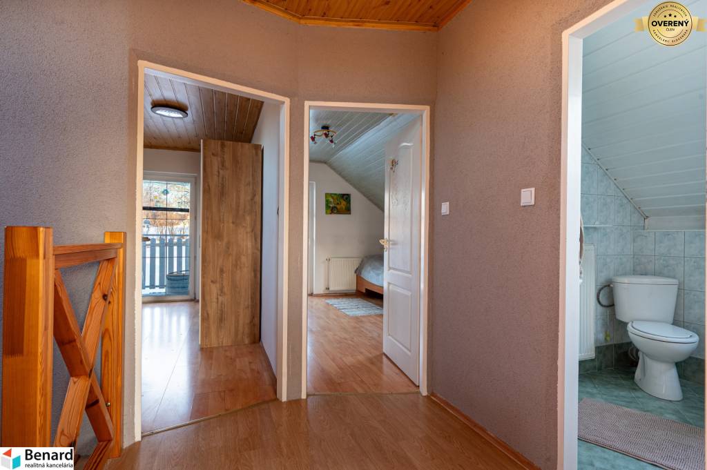 poschodie- 3 izby s výstupom na balkóny, kúpeľňa s vaňou a toaletou