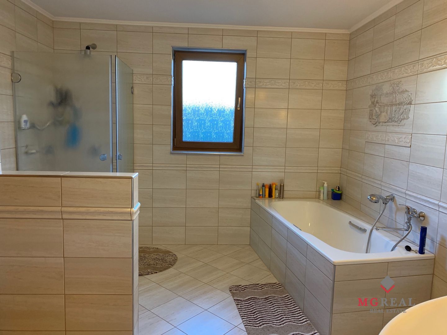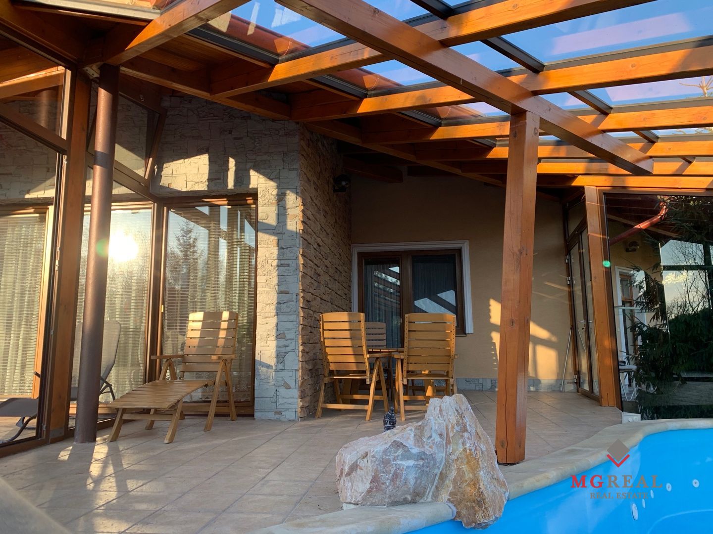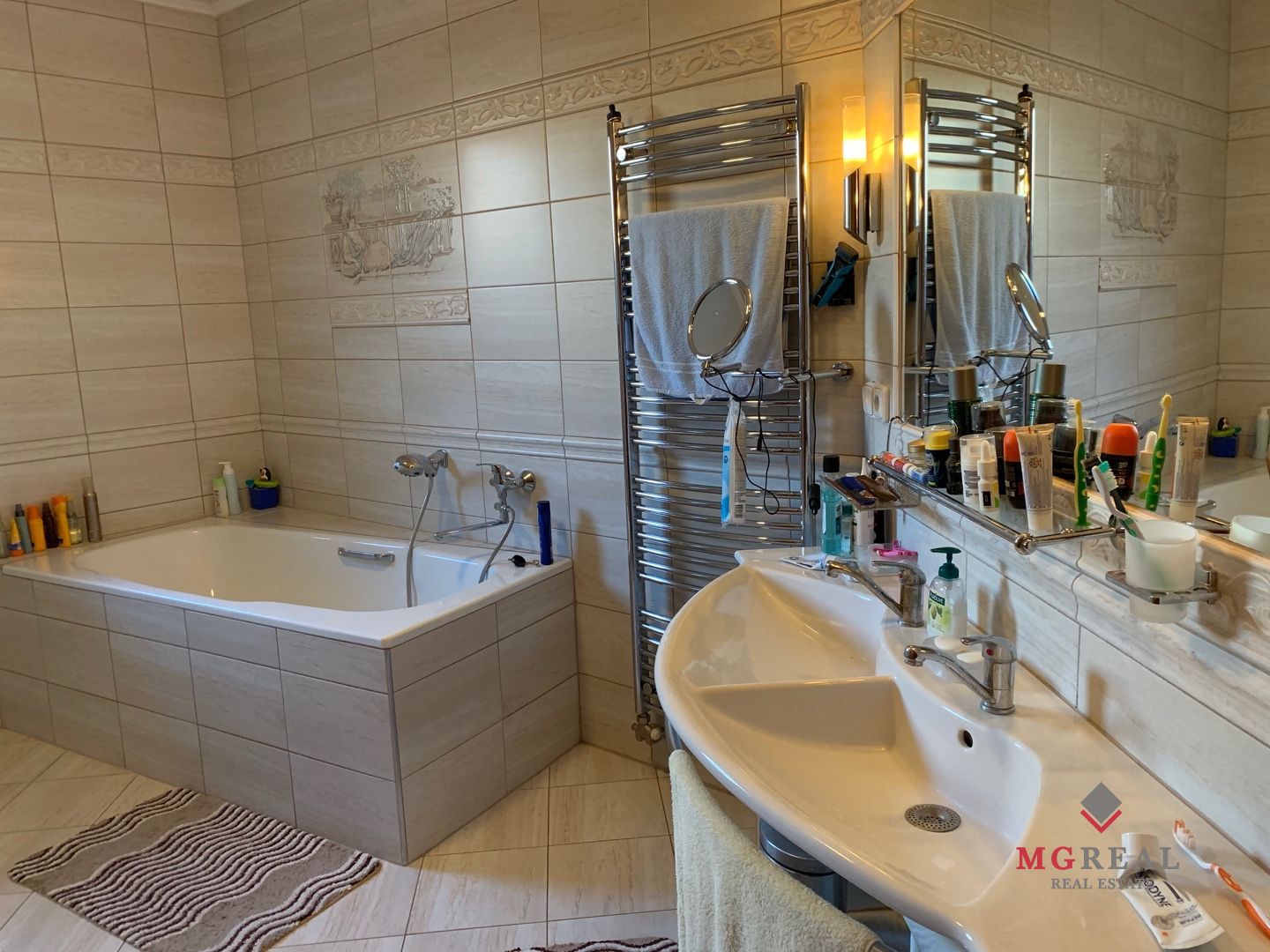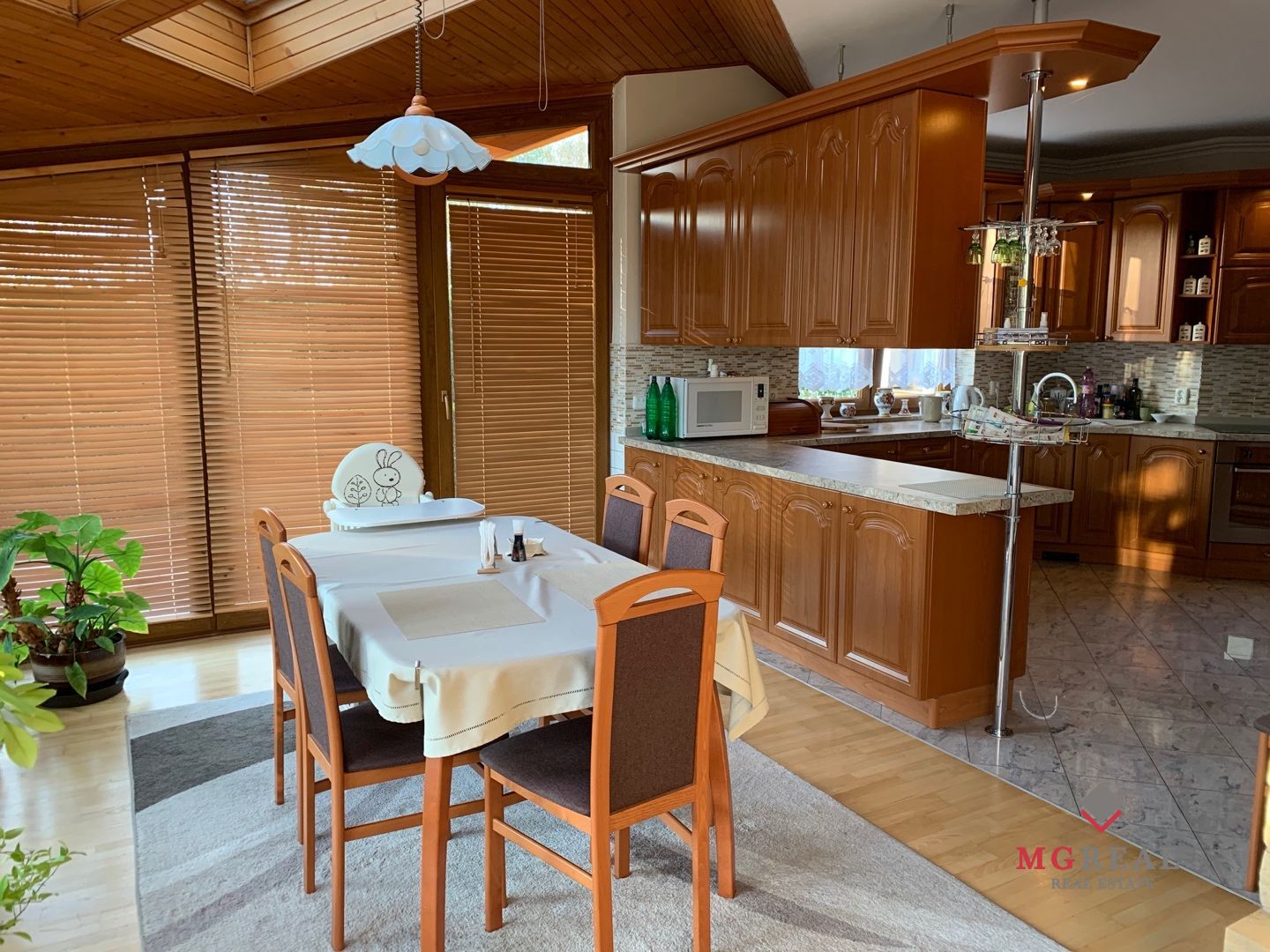 Ponúkame Vám na predaj čiastočne zariadený rodinný dom kúsok od Topoľčian v obci Tovarníky v tichej lokalite . Jedná sa o rodinný dom skolaudovaný v roku 2004 postavený na pozemku o rozlohe 1225 m2 . Obytná plocha domu je 209m2 . Dom je postavený z kvádra YTONG 40 , okná sú plastové -bezpečnostné 2 sklá proti rozbitiu. V celom dome je podlahové kúrenie - tepelné čerpadlo -hybrit -kombinácia plyn , slnečné kolektory- teplá voda -bazén , fotovoltailka ,odpad je vedený do kanalizácie , kopaná studňa, závlaha na trávniku . Alarm . Má 4 izby , obývačka je prepojená s kuchyňou a jedálňou , krb s prieduchmi do izieb . Podlahy v dome sú plávajúca, parkety, dlažba, mramor. Steny majú stierky. Okná sú plastové. Vybavenie kúpeľne: klasická vaňa, sprchovací kút , wc . Oddelené WC. Vybavenie kuchyne: kuchynská linka, sporák, umývačka riadu, chladnička. V spálni je vstavaná skriňa . Východ na terasu a bazén zo spálne , obývčky a kuchyne. V dome je i centrálny vysávač . Bazén je prestrešený , dá sa otvoriť v lete , s terasou , hlbka bazénu je 1,5 metra . Garáž je súčasťou domu , technická miestnosť s práčovňou , a podkrovie na umiestnenie vecí . Kúrenie: podlahové. Ostatné vybavenie: vstavané skrine, telefón, internet. Zabezpečenie bezpečnostnými dverami, alarmom.Strešná krytina: pozinkovaný plech. Rovinatý pozemok. Betónová prístupová cesta. Žiadne podpivničenie. Na pozemku sa nachádza vodovod, elektrická prípojka, plynová prípojka, kanalizácia. Na pozemku sa nachádza studňa.Výhody: slnečný, pekný výhľad, tiché prostredie, škola, škôlka, dieľňa, bazén, krb, zimná záhrada, altánok. Cena 275 000 €