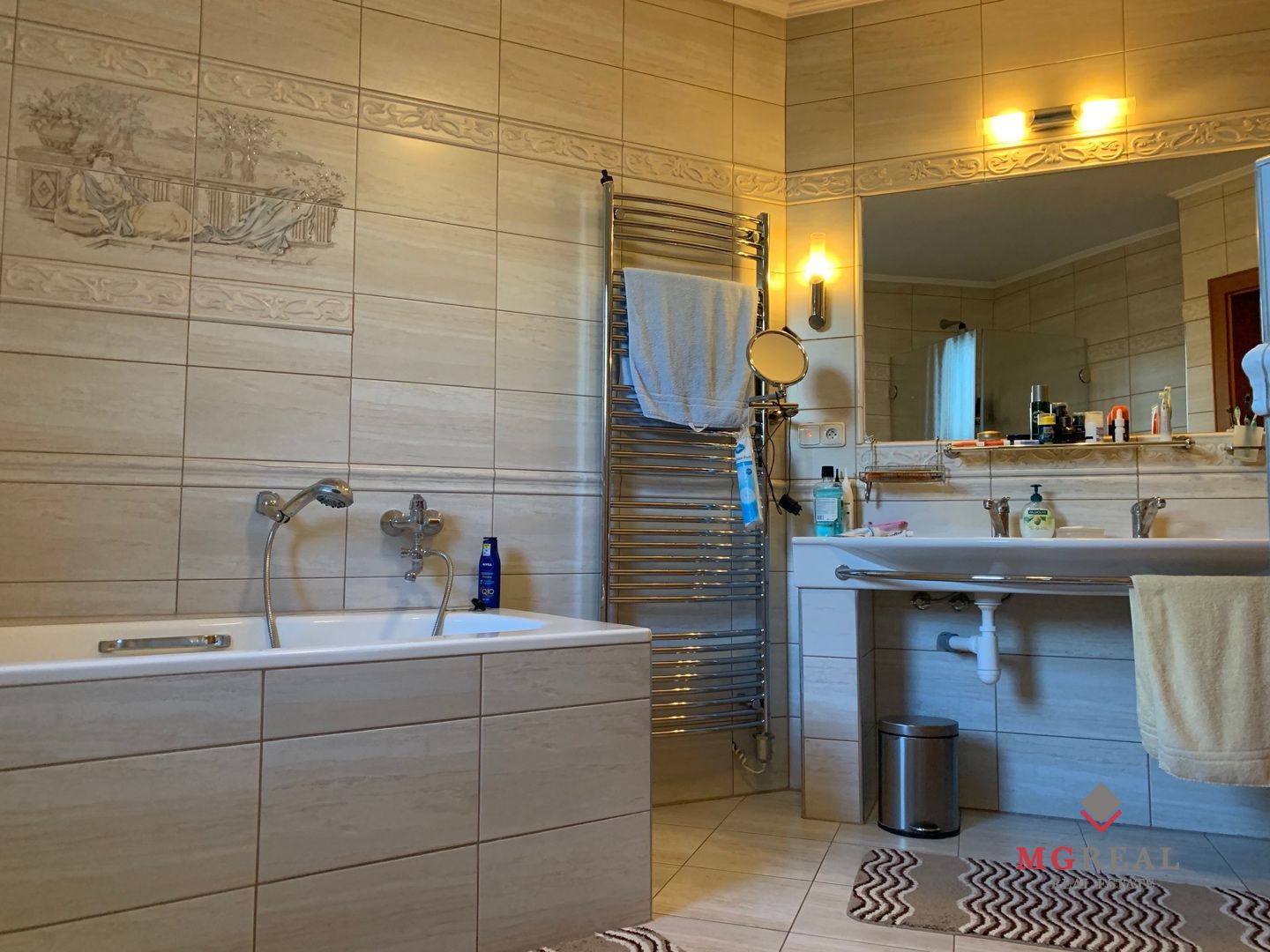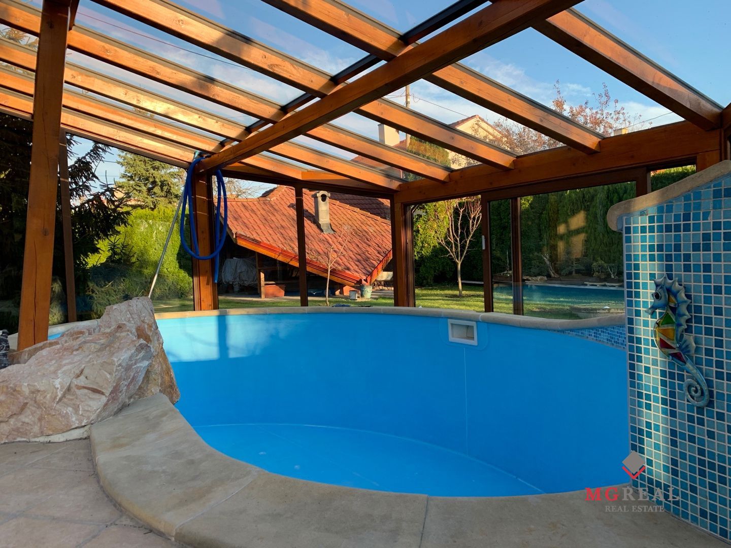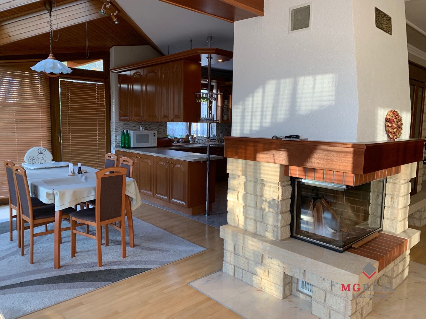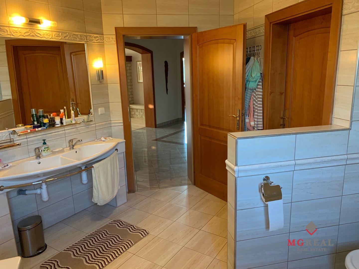 Ponúkame Vám na predaj čiastočne zariadený rodinný dom kúsok od Topoľčian v obci Tovarníky v tichej lokalite . Jedná sa o rodinný dom skolaudovaný v roku 2004 postavený na pozemku o rozlohe 1225 m2 . Obytná plocha domu je 209m2 . Dom je postavený z kvádra YTONG 40 , okná sú plastové -bezpečnostné 2 sklá proti rozbitiu. V celom dome je podlahové kúrenie - tepelné čerpadlo -hybrit -kombinácia plyn , slnečné kolektory- teplá voda -bazén , fotovoltailka ,odpad je vedený do kanalizácie , kopaná studňa, závlaha na trávniku . Alarm . Má 4 izby , obývačka je prepojená s kuchyňou a jedálňou , krb s prieduchmi do izieb . Podlahy v dome sú plávajúca, parkety, dlažba, mramor. Steny majú stierky. Okná sú plastové. Vybavenie kúpeľne: klasická vaňa, sprchovací kút , wc . Oddelené WC. Vybavenie kuchyne: kuchynská linka, sporák, umývačka riadu, chladnička. V spálni je vstavaná skriňa . Východ na terasu a bazén zo spálne , obývčky a kuchyne. V dome je i centrálny vysávač . Bazén je prestrešený , dá sa otvoriť v lete , s terasou , hlbka bazénu je 1,5 metra . Garáž je súčasťou domu , technická miestnosť s práčovňou , a podkrovie na umiestnenie vecí . Kúrenie: podlahové. Ostatné vybavenie: vstavané skrine, telefón, internet. Zabezpečenie bezpečnostnými dverami, alarmom.Strešná krytina: pozinkovaný plech. Rovinatý pozemok. Betónová prístupová cesta. Žiadne podpivničenie. Na pozemku sa nachádza vodovod, elektrická prípojka, plynová prípojka, kanalizácia. Na pozemku sa nachádza studňa.Výhody: slnečný, pekný výhľad, tiché prostredie, škola, škôlka, dieľňa, bazén, krb, zimná záhrada, altánok. Cena 275 000 €