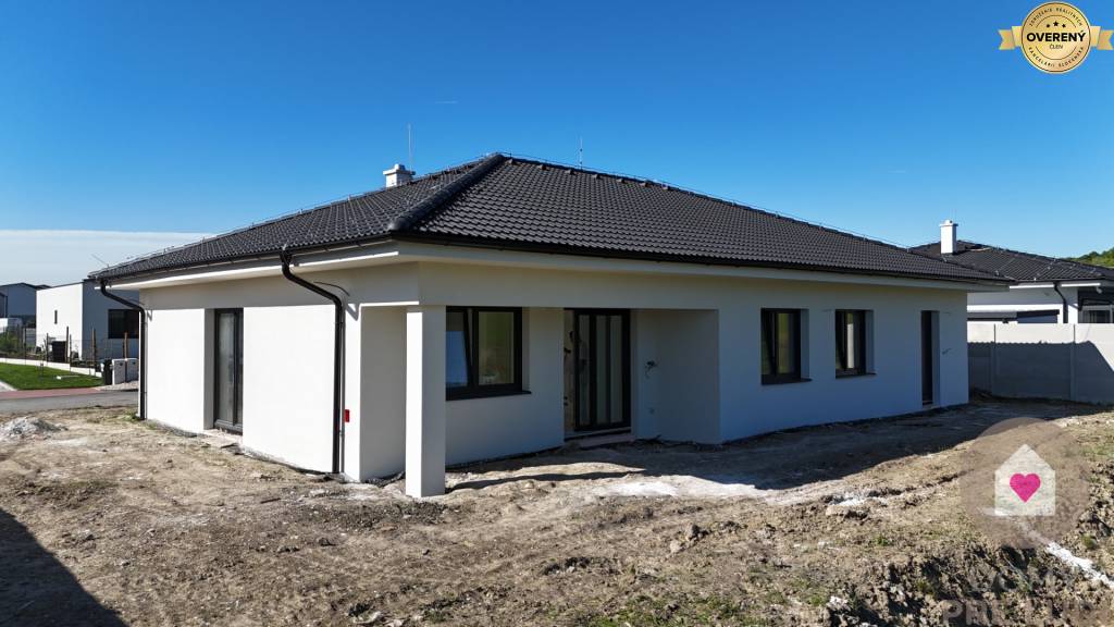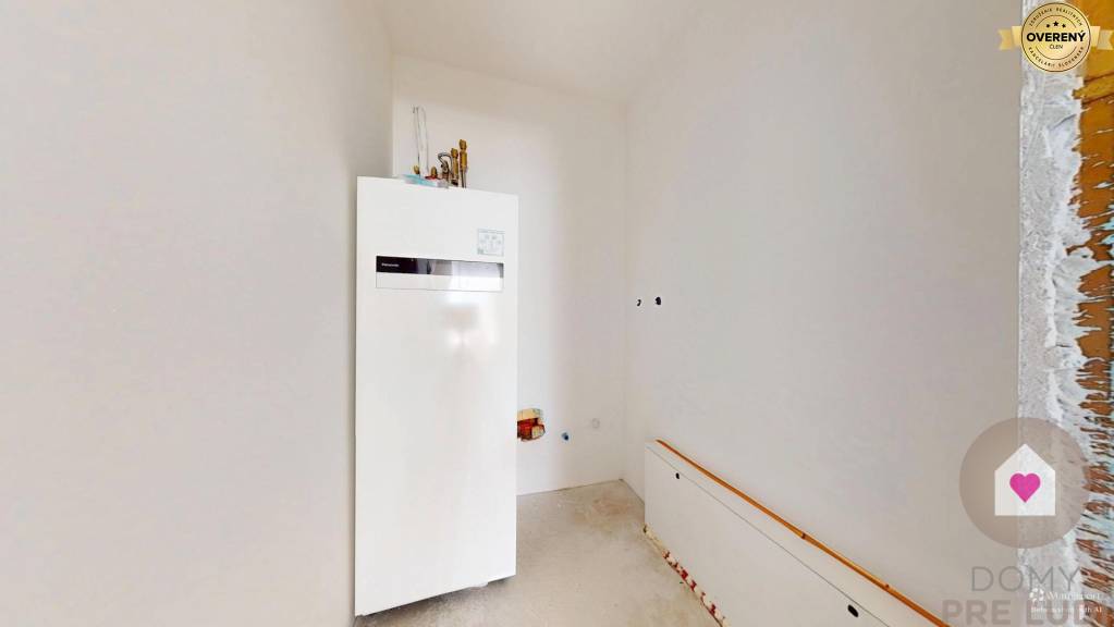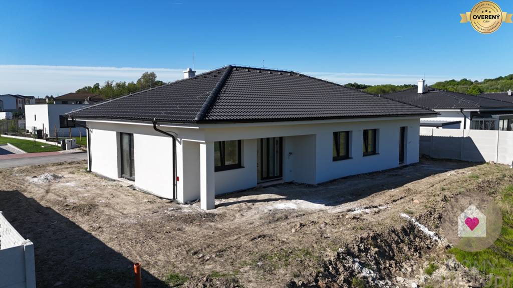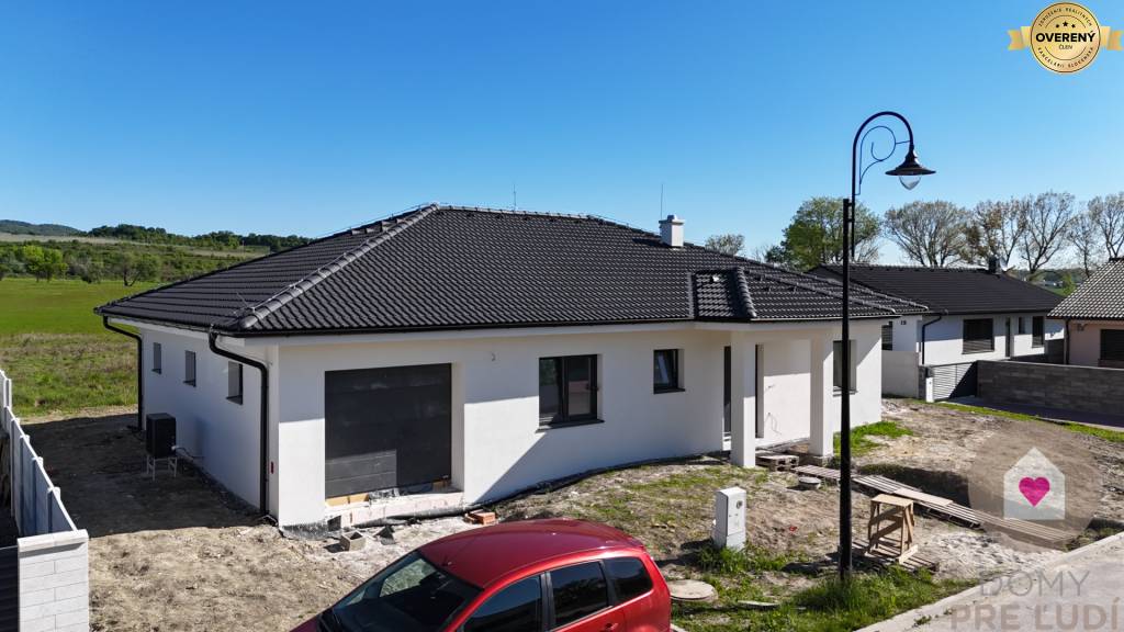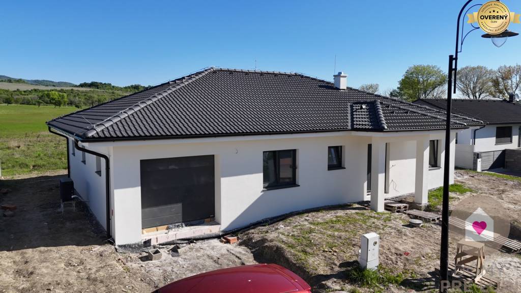 Inžinierske siete: Dom bude napojený na všetky potrebné inžinierske siete vrátane elektriny, vody, kanalizácie a tepelného čerpadla. Pozemok vyrovnaný bez chodníkov, terasy a plotov.