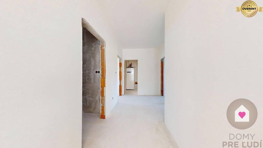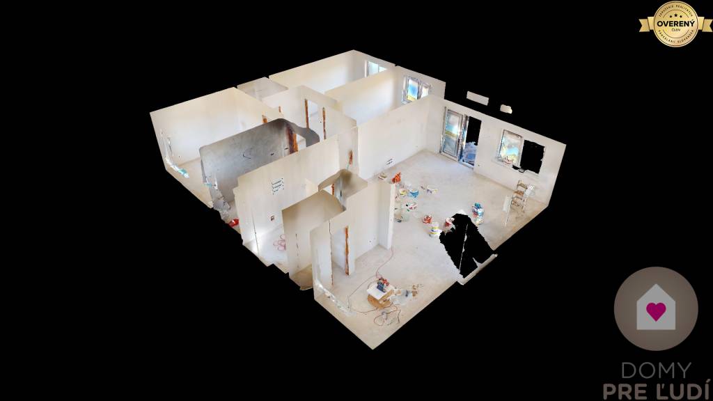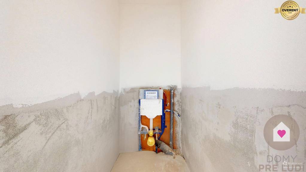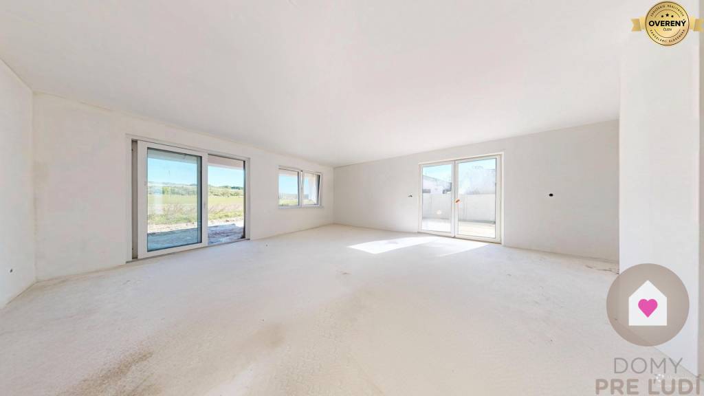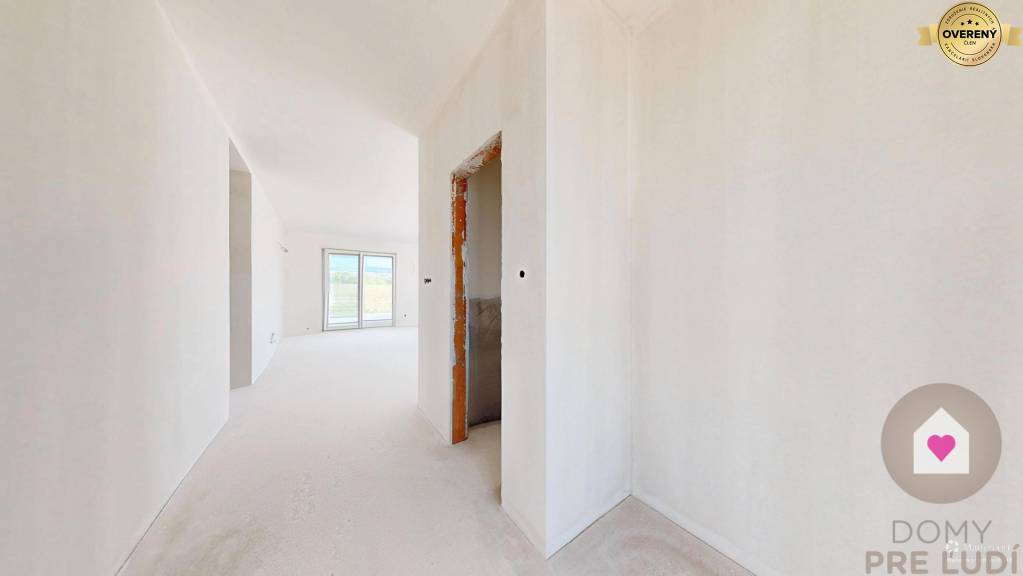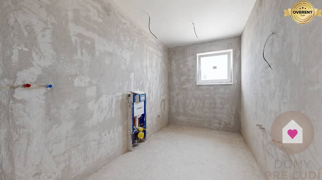 Inžinierske siete: Dom bude napojený na všetky potrebné inžinierske siete vrátane elektriny, vody, kanalizácie a tepelného čerpadla. Pozemok vyrovnaný bez chodníkov, terasy a plotov.