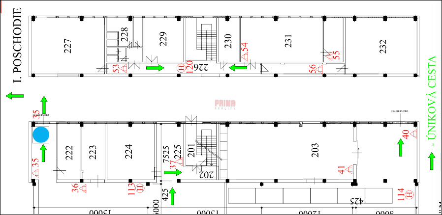 Kancelária 71 m2, kancelária 30 m2, kancelária 94 m2, kancelária / zasadacia miestnosť 70 m2 + chodba, záchody, kuchynka, šatne, sprchy