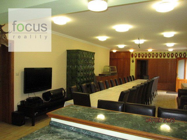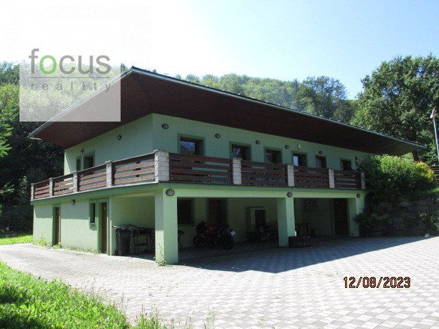V chatovej oblasti Červený medokýš pod Pustým hradom ponúkam na predaj rekreačný areál s pozemkom o výmere 1.419 m2 vhodný aj ako školiace stredisko, prechodné ubytovanie, prípadne iné komerčné využitie. Pôvodne tehlová budova sa v priebehu rokov 2014 – 2016 kompletne zrekonštruovala a upravila do súčasného stavu. Vstup do technických priestorov na prízemí je priamo z nádvoria kde máme prístup motorovým vozidlom. V tejto časti je najväčšia miestnosť zariadená ako veľkokapacitná profi-kuchyňa, technická miestnosť s prívodom a ovládaním elektriny, vody a vykurovania, sklad a vonkajšie toalety. Podlažie je delené na dva celky so samostatnými vchodmi a to komerčná spoločenská miestnosť so štyrmi apartmánmi s ubytovacou kapacitou 10 lôžok a oddelený 3 izbový byt. Spoločenská hala má kapacitu cca 30 miest na sedenie s možnosťou rozšírenia využitím vonkajšej terasy. Dominantný prvok je kachlová pec v strede miestnosti, ktorá zároveň vykuruje aj dva apartmány. Hala je ukončená kuchyňou prispôsobenou na rýchle občerstvenie. Oddelená bytová jednotka má tri sólo izby, sociálne zariadenia a obývaciu izbu spojenú s kuchyňou. Vykurovanie je elektrické podlahové v kombinácii lokálne pevným palivom. Voda je čerpaná z vlastnej studne, odvod do žumpy. Prístupová cesta je majetkom mesta Zvolen. Nehnuteľnosť sa nachádza v tesnej blízkosti Zvolena-R1, cca 10 min. automobilom. Atraktivitu zvyšuje blízky turistický chodník na Pustý hrad a minerálny prameň červený medokýš. V cene je zahrnutý kompletný katastrálny a finančný servis. Kontakt: Ing. ROMAN CERHA ,0915 550324. Viac nehnuteľností nájdete na: focusreality.sk